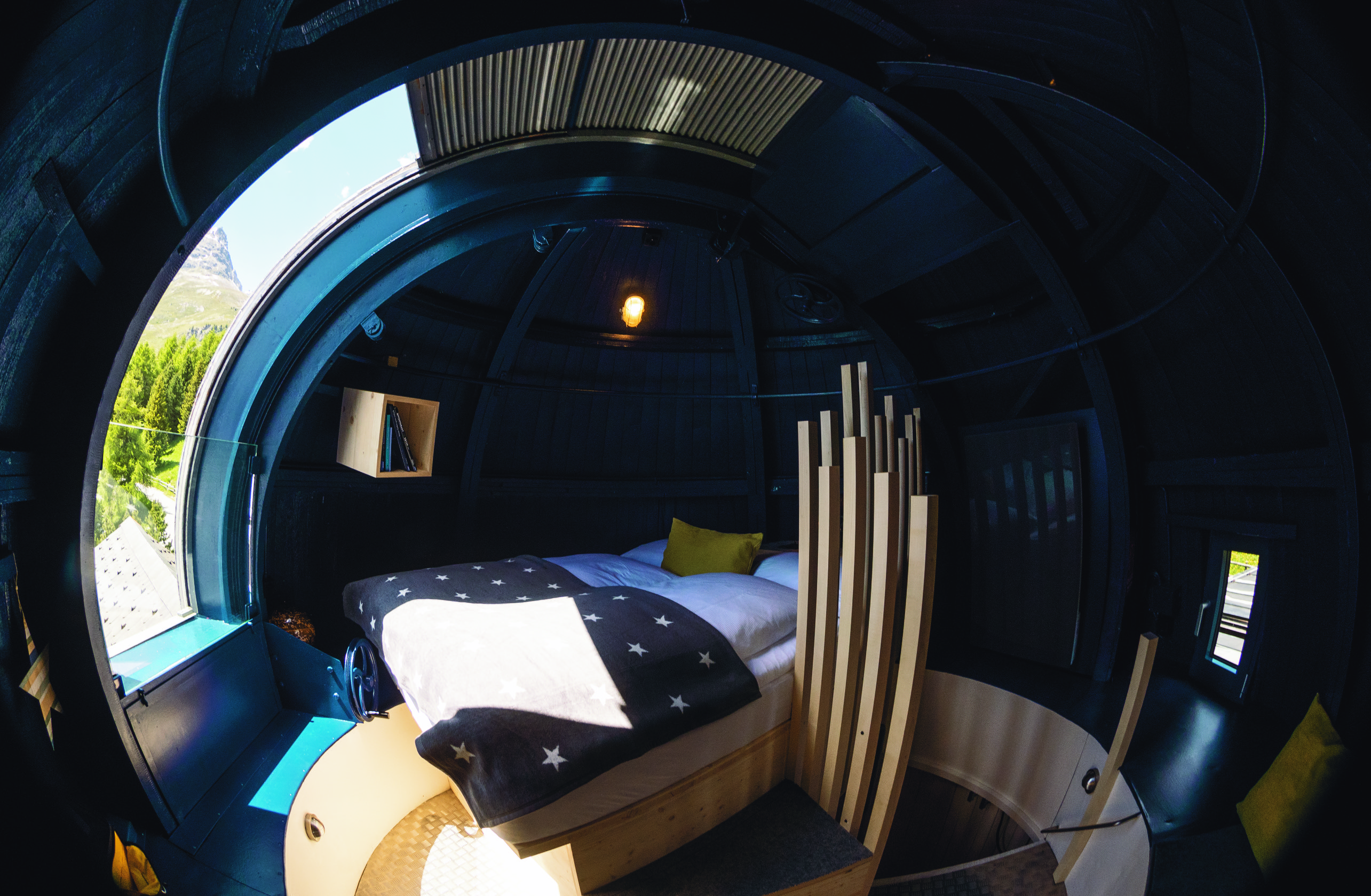 An observatory has been transformed into a hotel room for guests in St. Moritz. There’s a plexiglass room on Lake Maggiore, and even a boat you can camp in on Lake Thun.