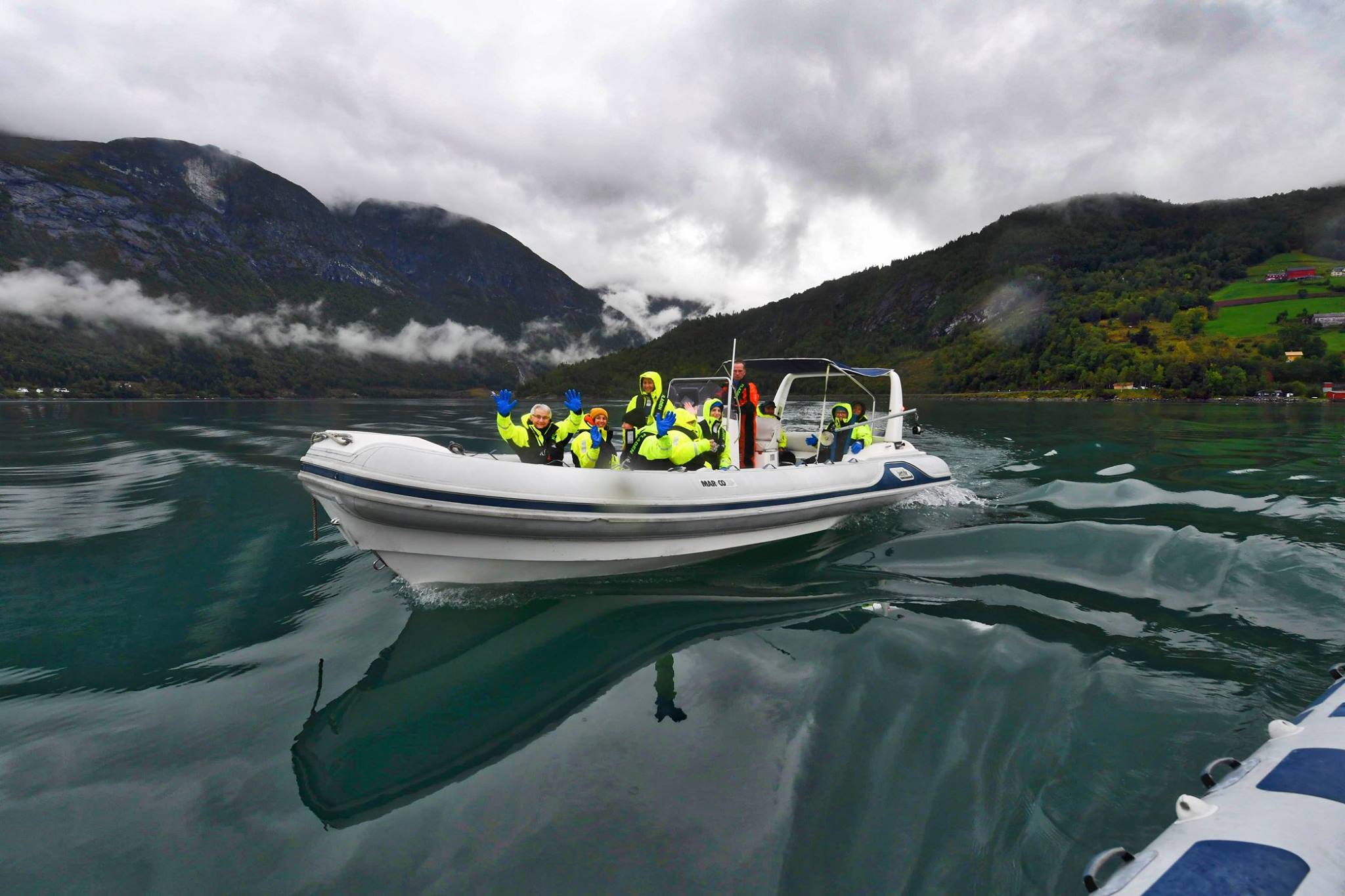 Back out on the water next day, and fully suited and booted in waterproofs, we ride a RIB – that’s a Rigid Inflatable Boat, landlubbers – out into Nordfjord.
