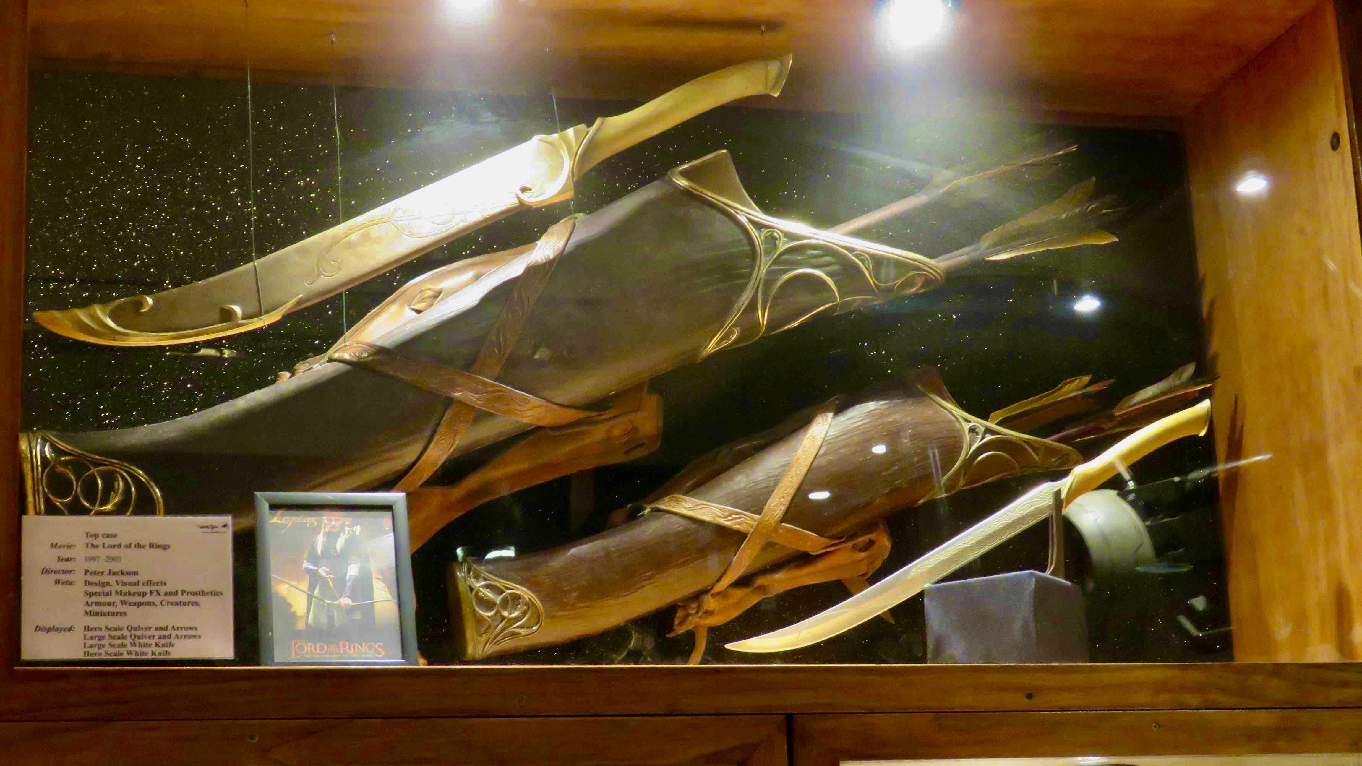 There’s armour and weapons galore here, ranging from Legolas’s bow and quiver to Sauron’s giant mace. Real-looking swords turn out to be rubber or plastic, although there are also steel weapons and bronze sculptures.