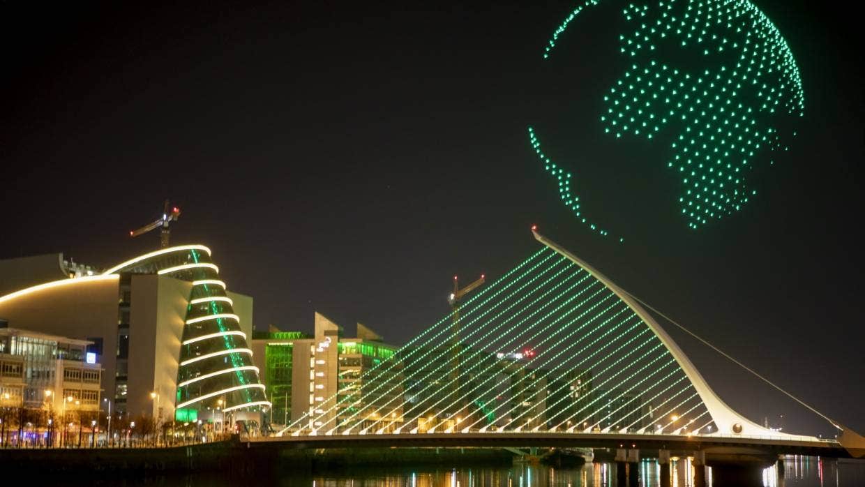 DUBLIN put on an amazing aerial show to mark St Patrick’s Day, using 500 drones to create ‘An Orchestra of Light’.