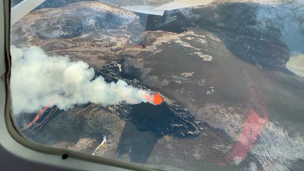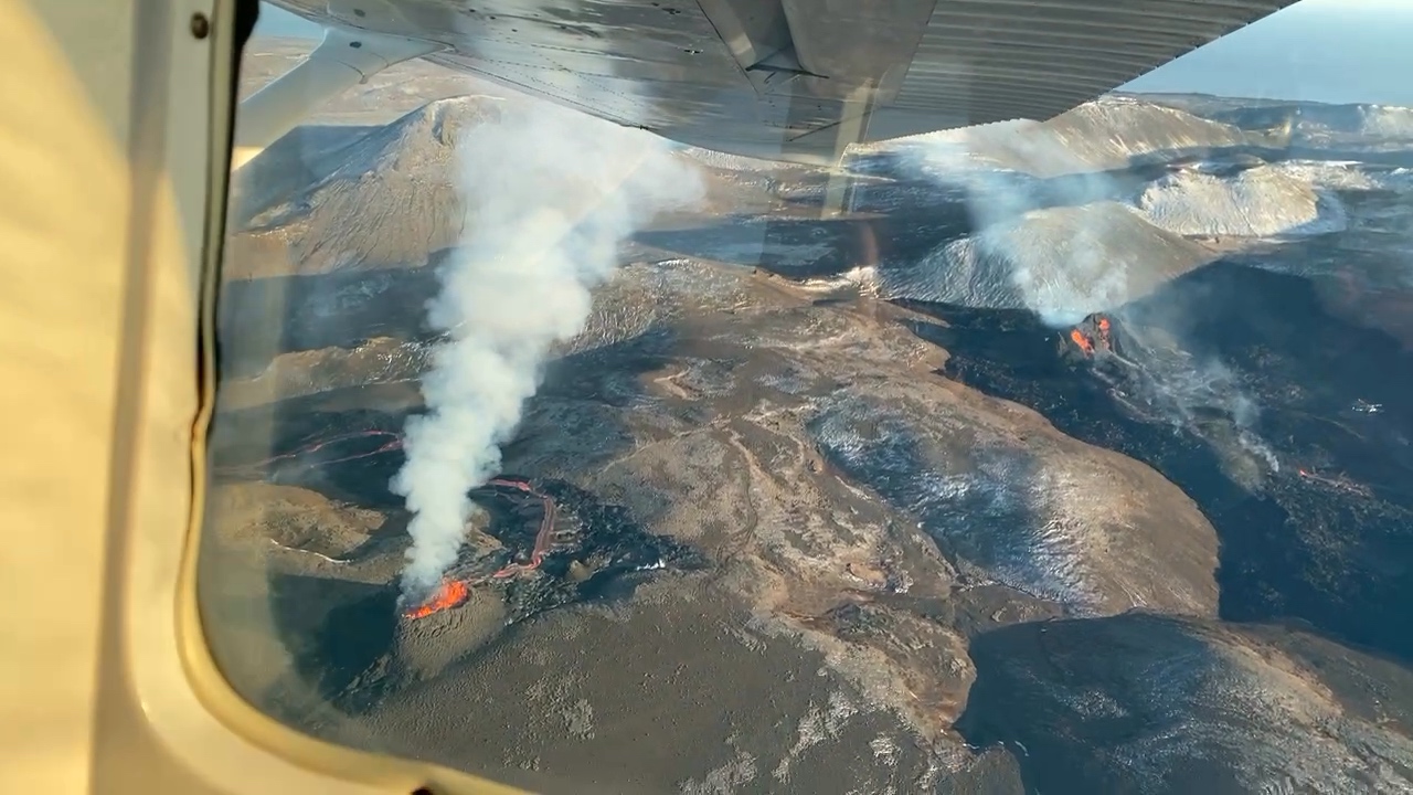 The 65-year-old former teacher took a new party of 800 virtual guests OVER the Fagradalsfjall volcano in a light aircraft, flying 1,500 feet above the dramatic lava flows.