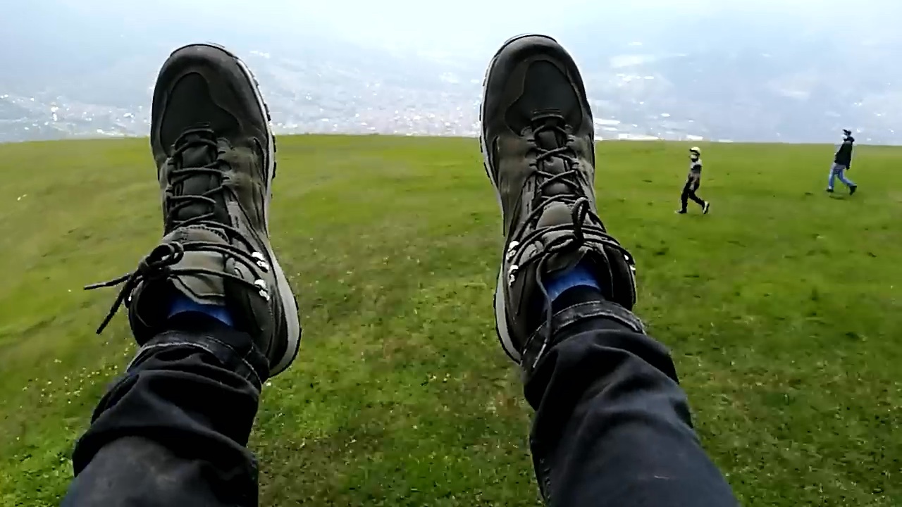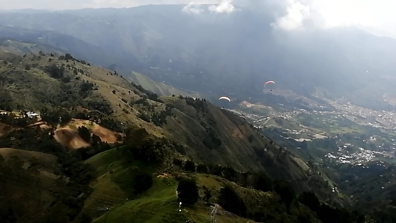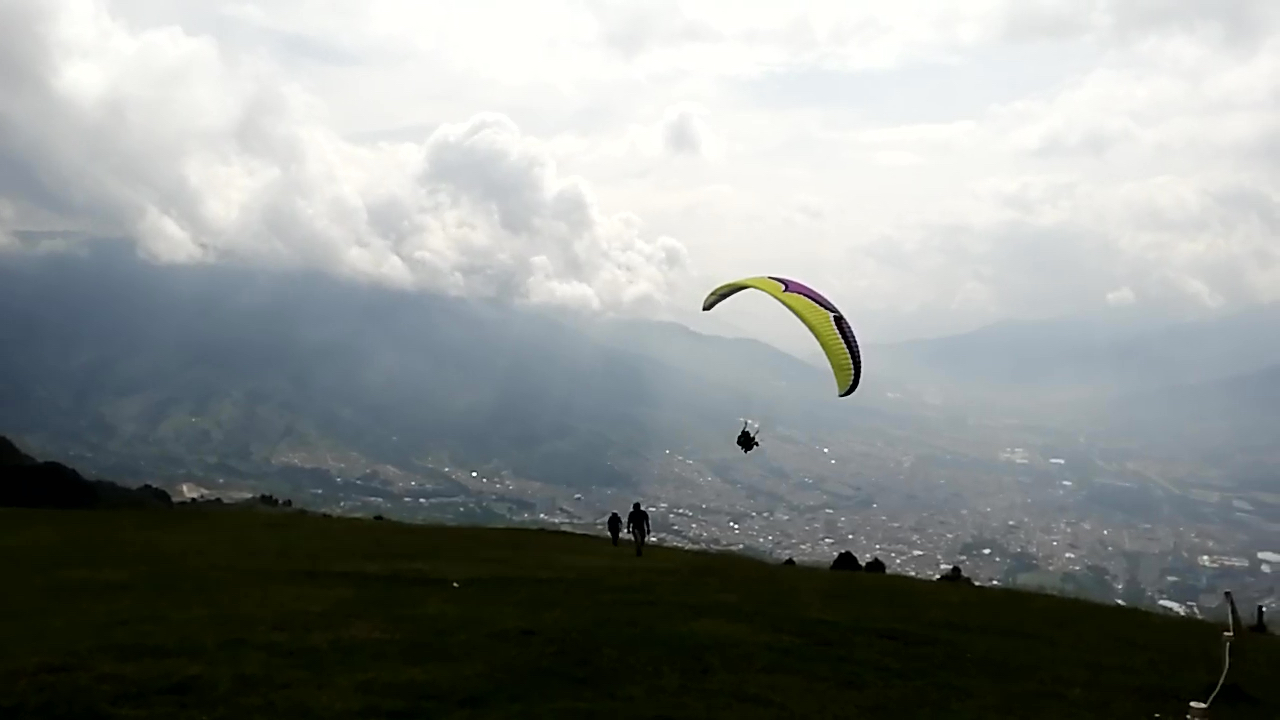 It was a tandem hang-glider flight on which Santi was accompanied by pilot Juan David, myself and some 300 people clinging to his jacket.
