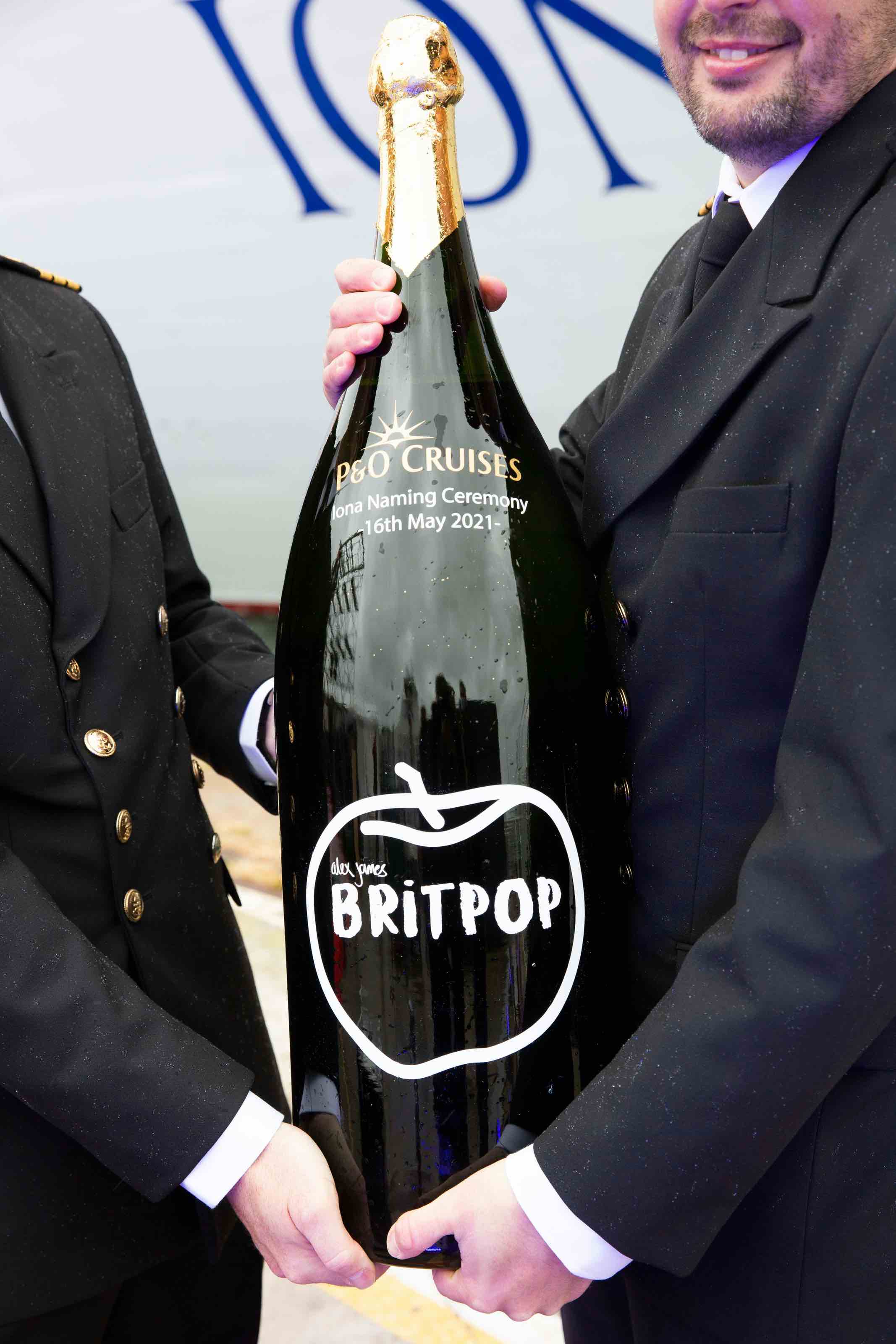 Iona’s Captain Wesley Duncan and P&O President Paul Ludlow joined Dame Irene for the bottle smash.