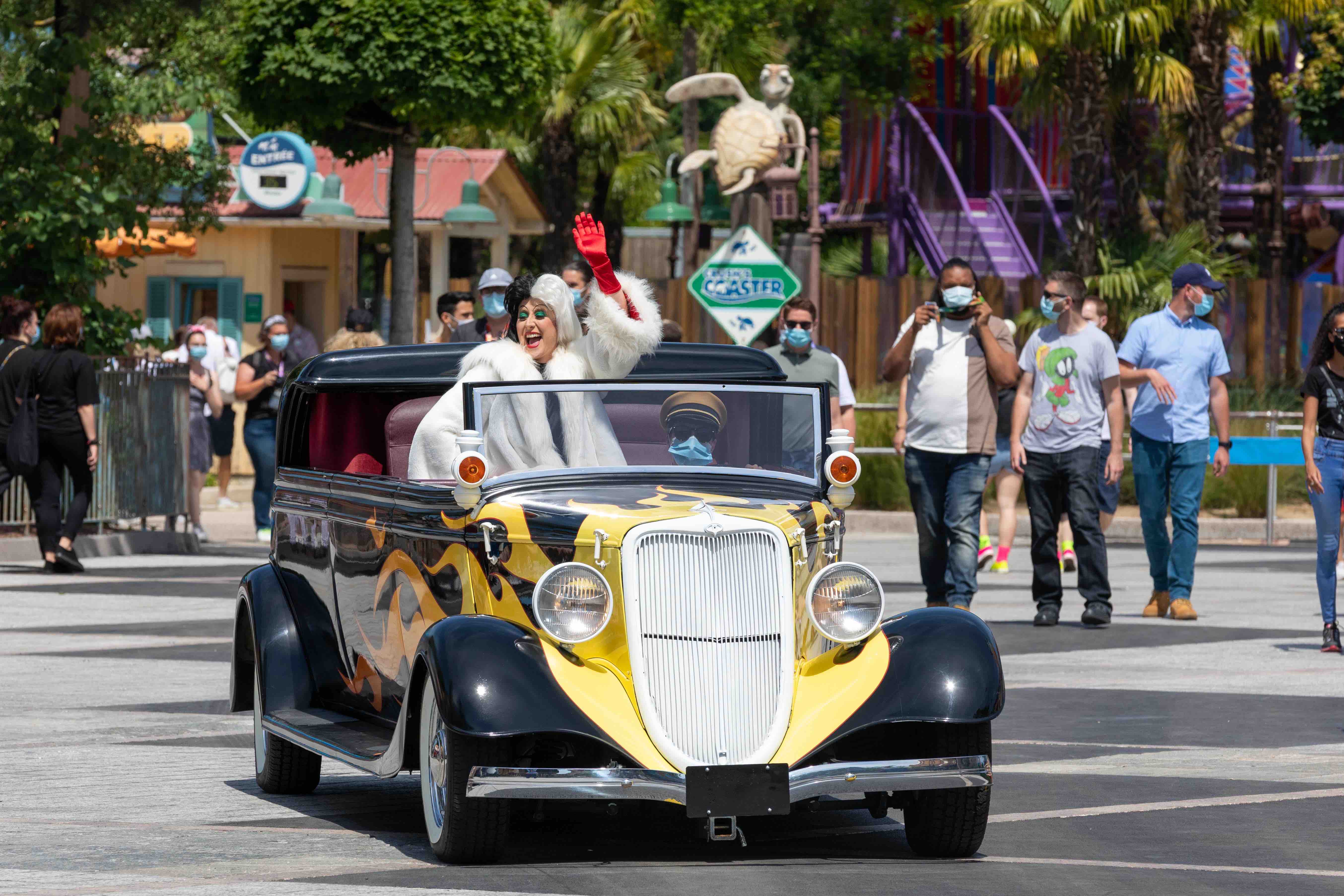 New re-opening experiences find Chewbacca, Kylo Ren, and Stormtroopers at the Videopolis Theatre, and appearances by Cruella, and Emile and Remy from Ratatouille.