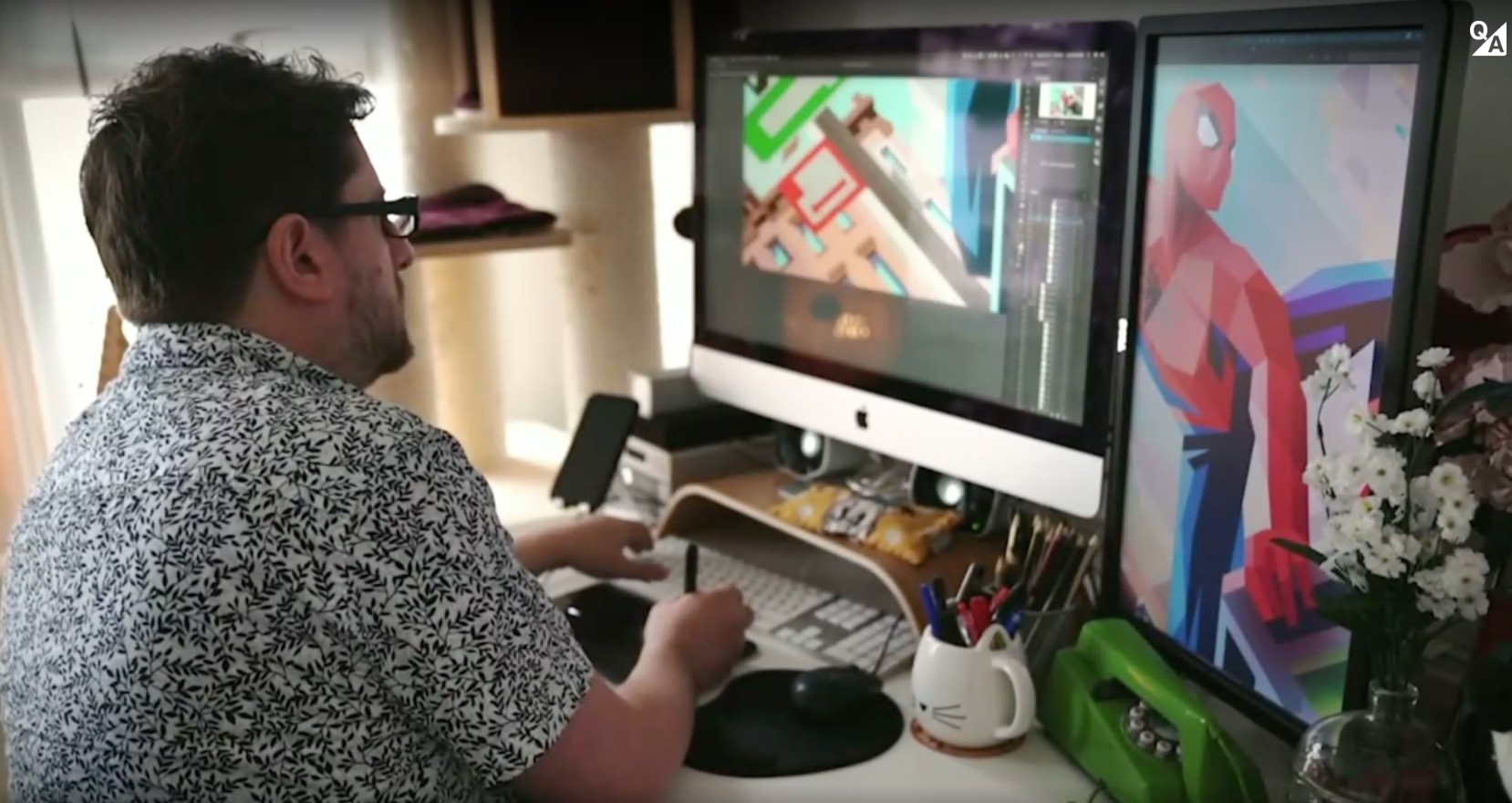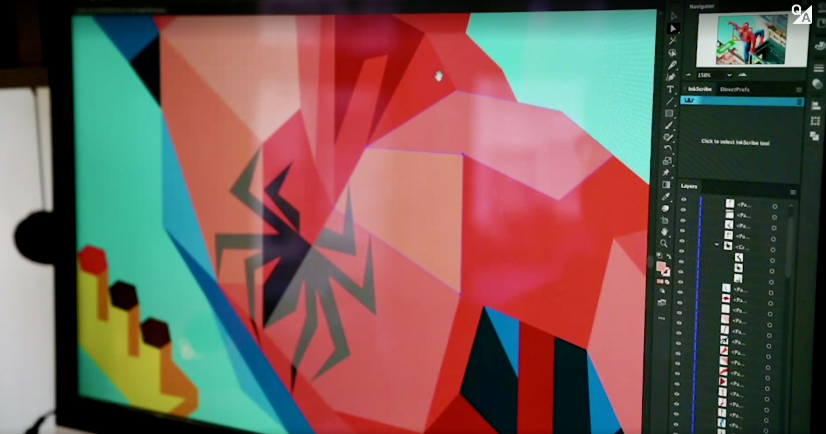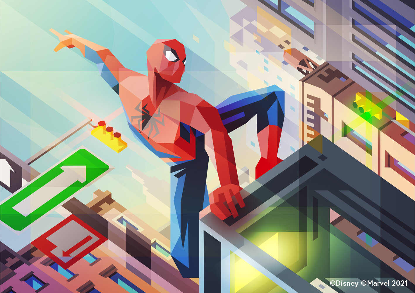 “Spider-Man is always a very cool character to draw,” he says. “He’s so athletic and dynamic and my work is generally about shapes and angles, so that was really key for me to try to capture.