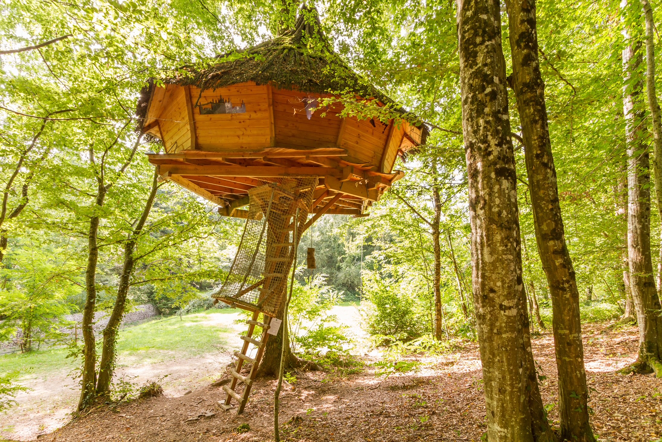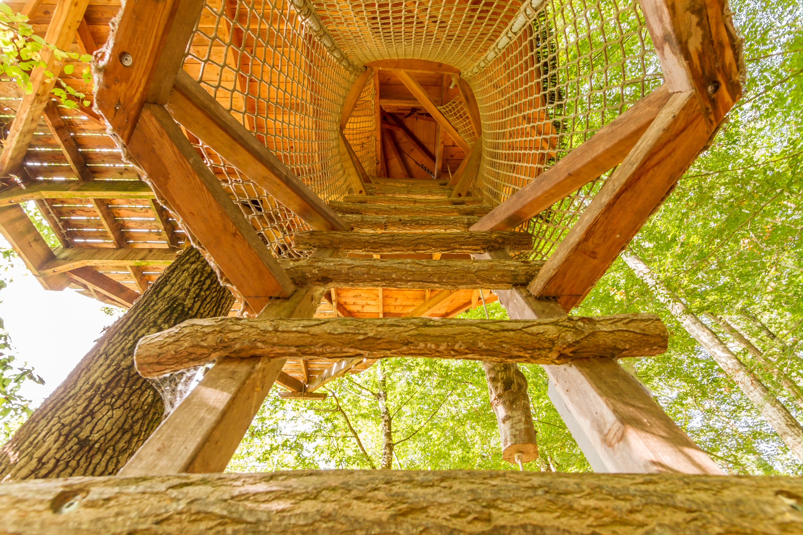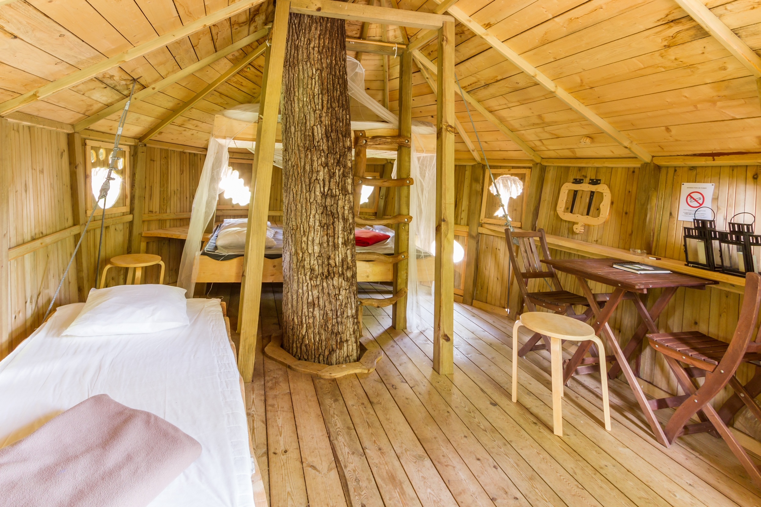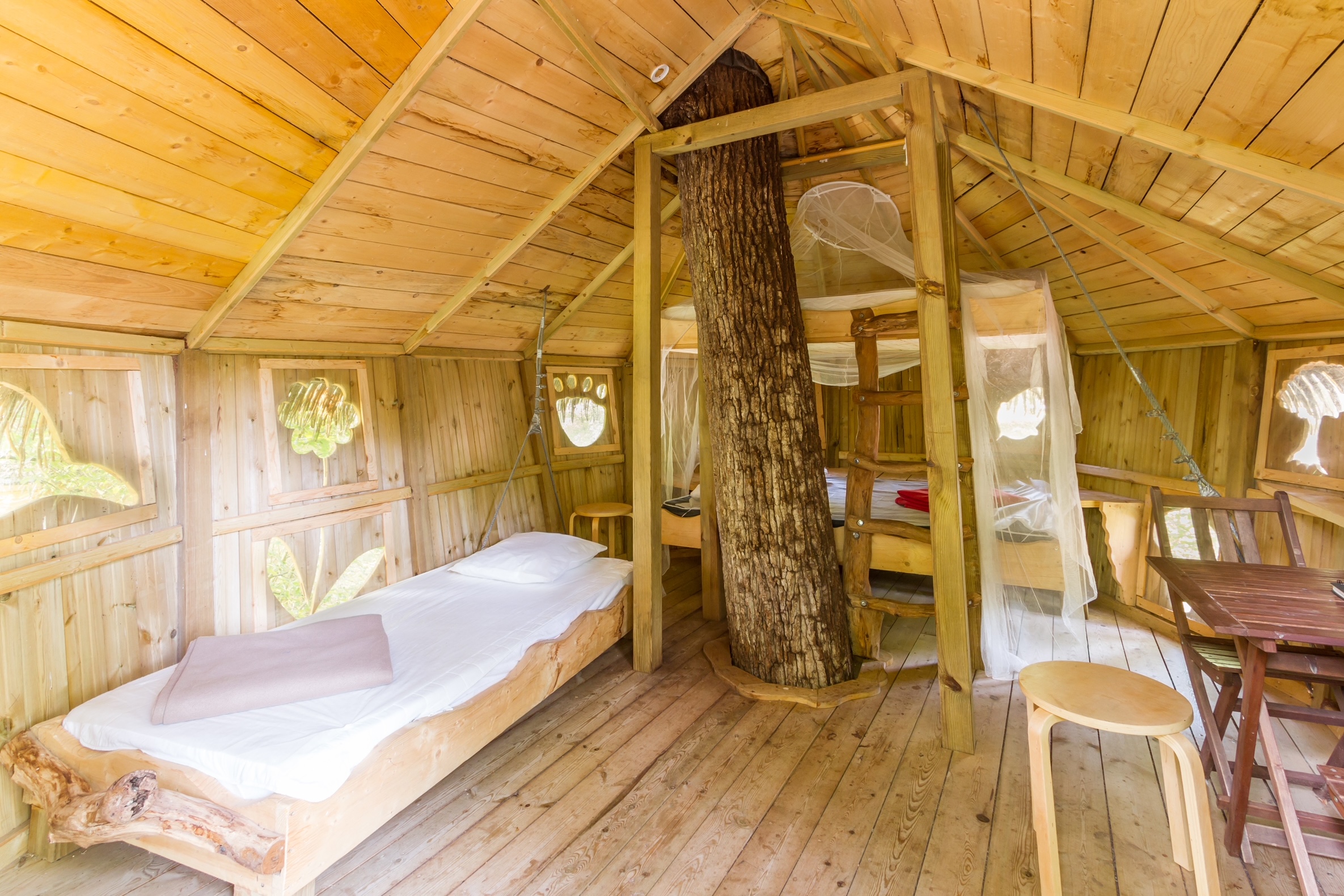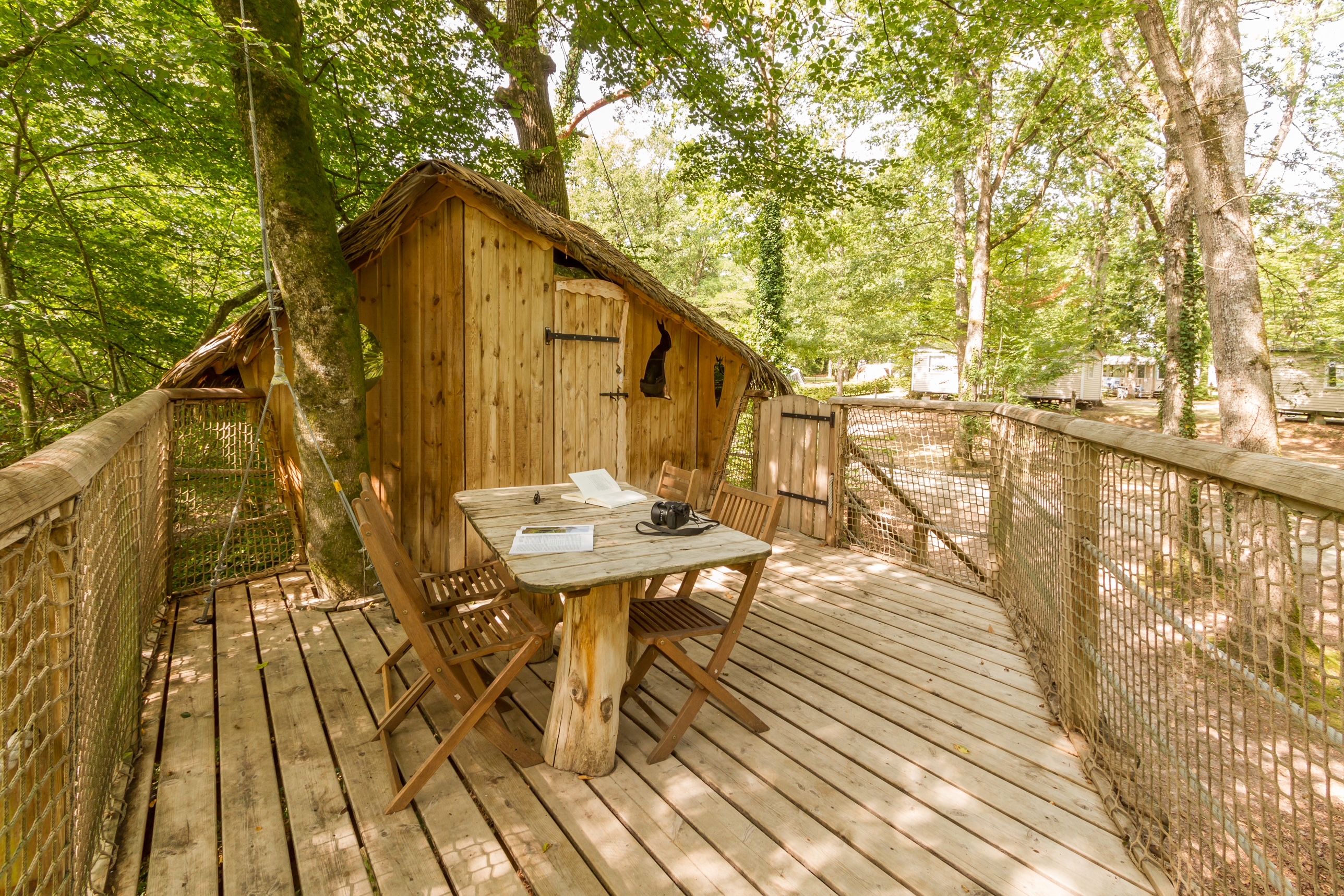 Treehouses at Le Parc de Fierbois are a natural treat, perched up to seven metres high and reached by a wooden staircase or ladder.