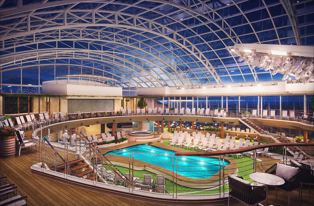 The SkyDome was first seen on P&O’s Iona, which launched in May 2021, but will be the first ship of the line with the retractable roof.