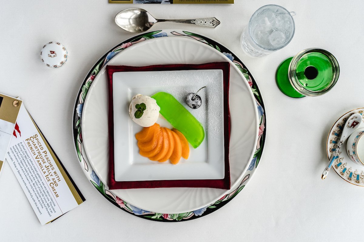 Spiced Peaches in Chartreuse Jelly and French Vanilla Ice Cream