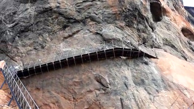Steps clinging to the side of the rock look precarious at this point but don’t worry. Our journey to the top takes us off in another direction that’s more easily accessible.