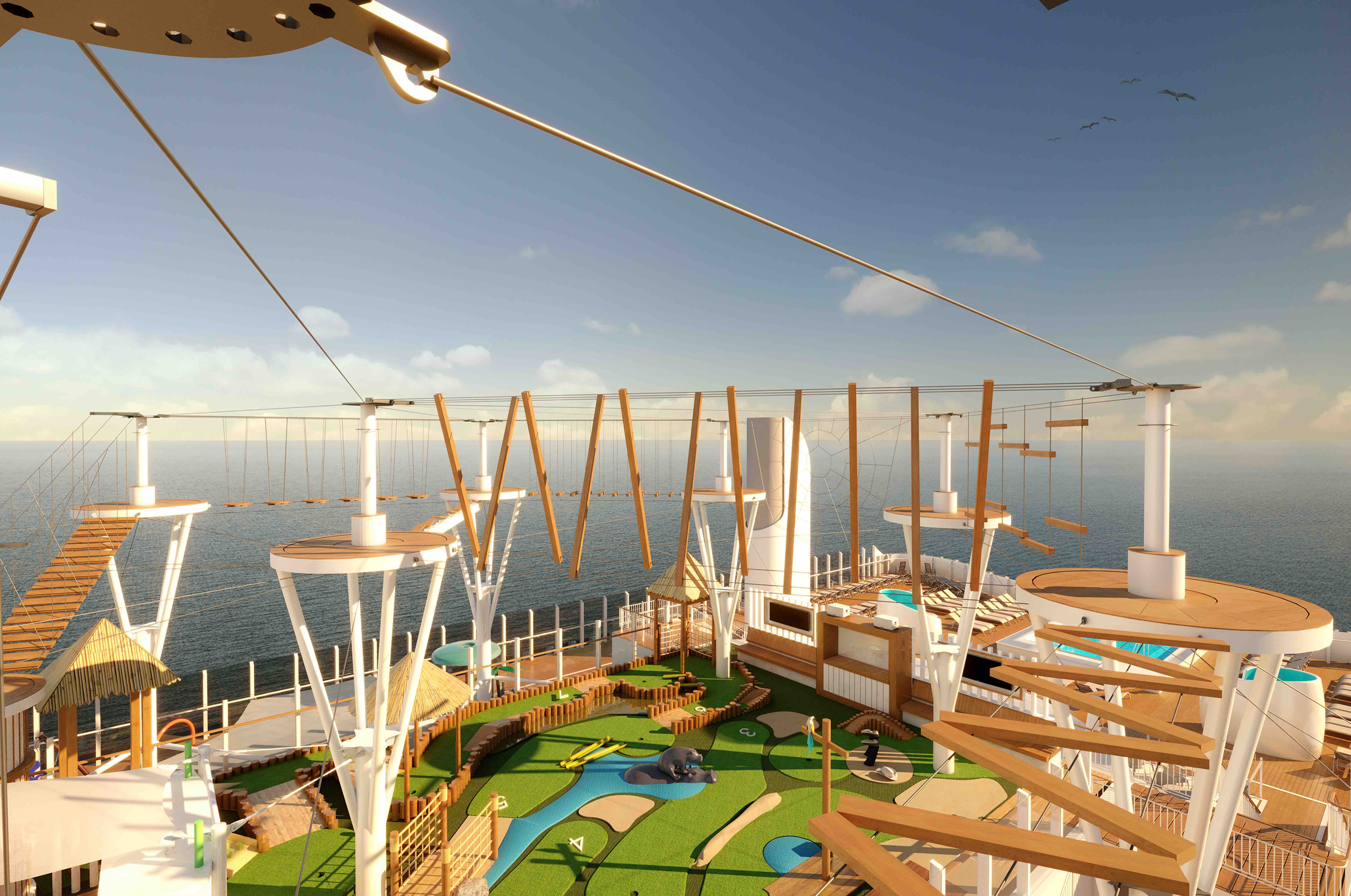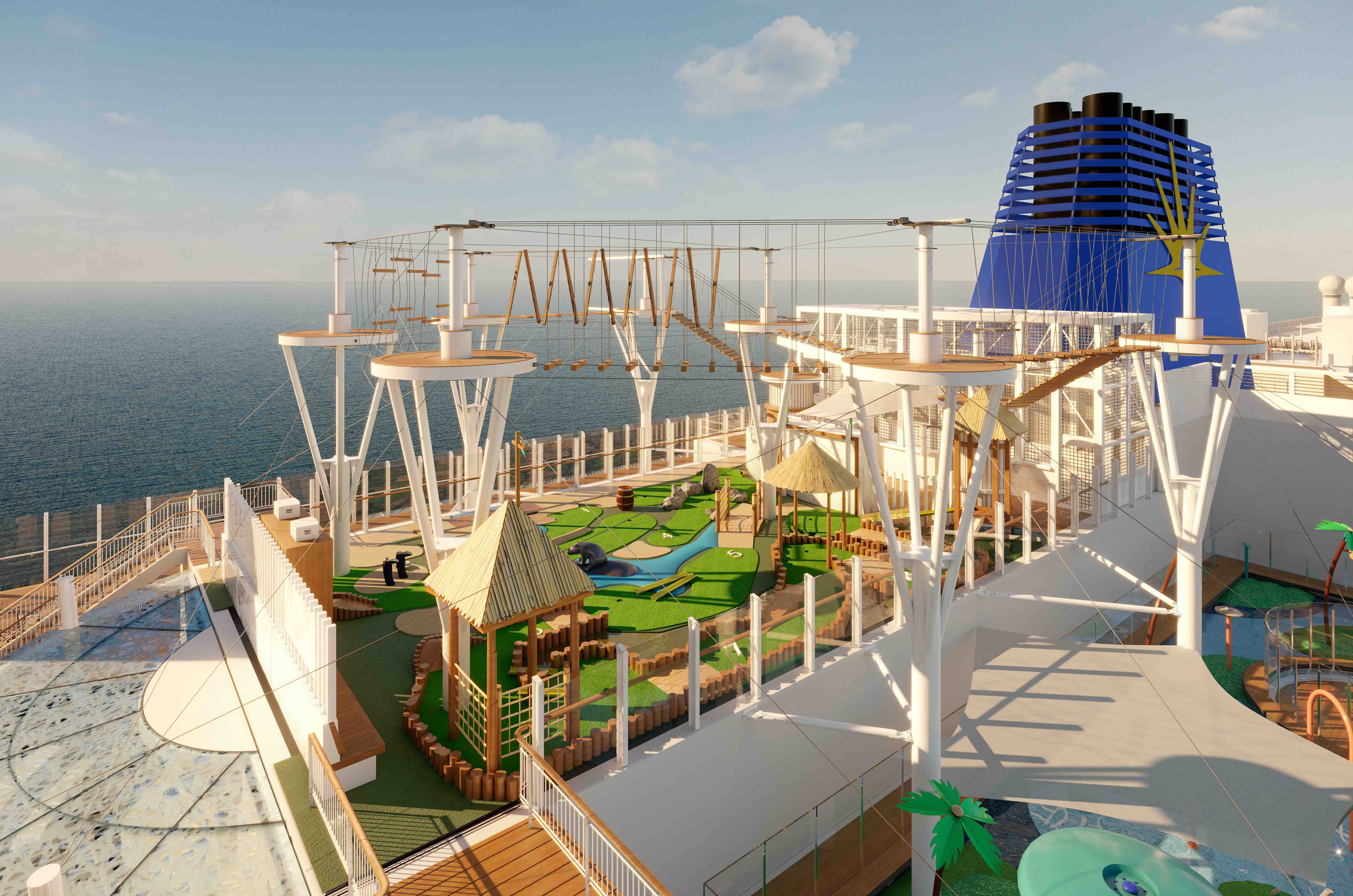 A HIGH ropes experience, tropical themed mini-golf and water splash zone will all form part of a new top deck Altitude experience on Arvia, P&O Cruises newest ship to be launched in December 2022.