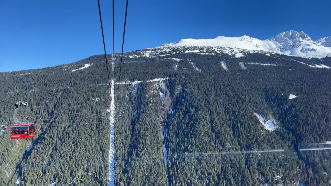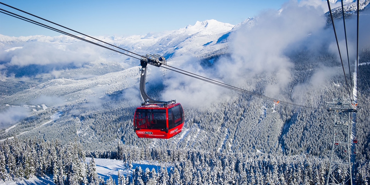 We’re riding the record-breaking Peak 2 Peak ski lift strung more than two and a half miles between two mountains, wintry Whistler (2,181m) and beautiful Blackcomb (2,436m).