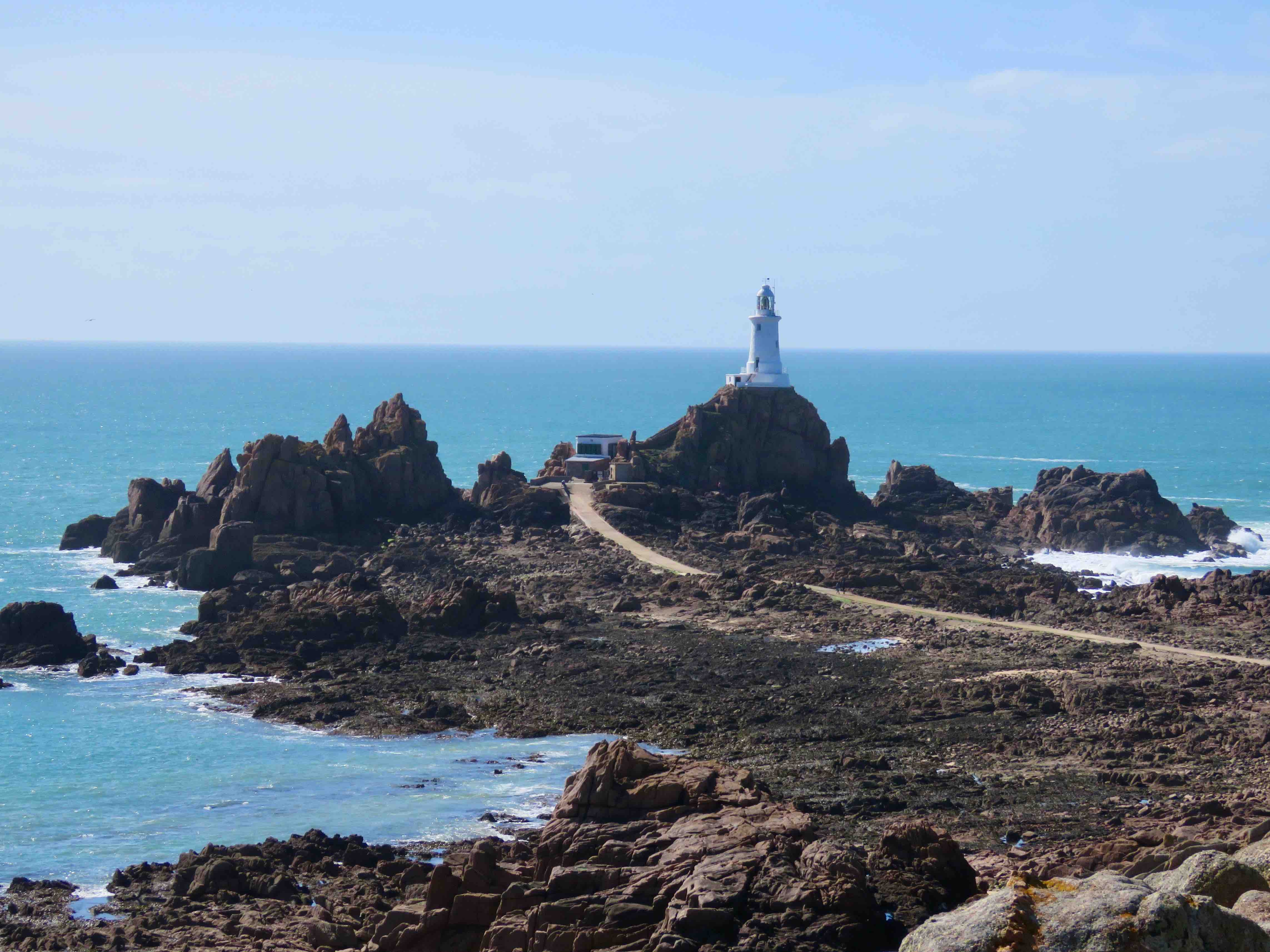 The lighthouse stands on a rock that is, in fact, a tidal island. A causeway links it to the shore at low tide, and there’s an alarm to warn visitors to clear the causeway as the tide rises!