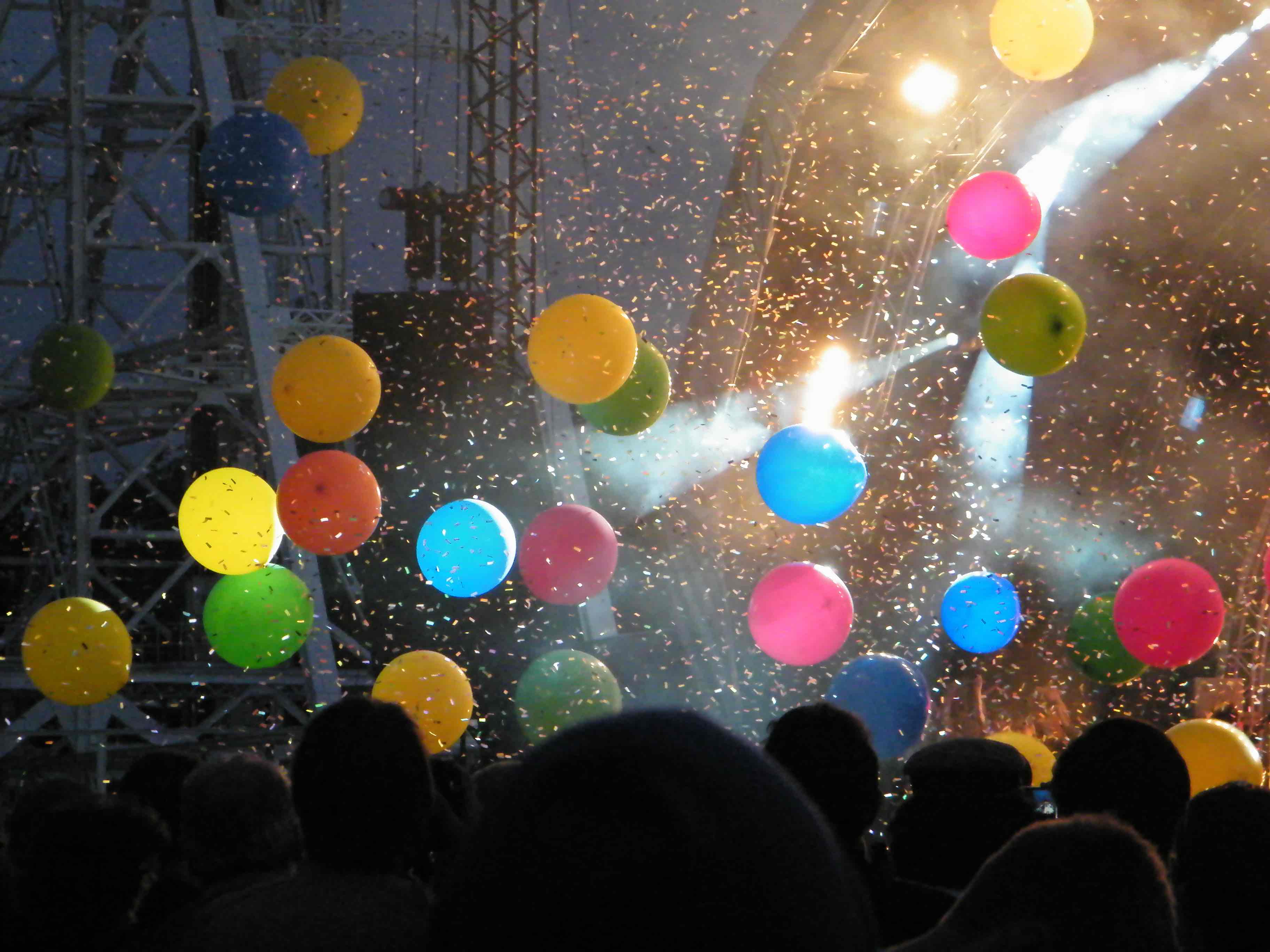 Taken during Wayne Coyne & Co’s headlining set, the brightly coloured balloons shone against the night sky, while images were projected on to the telescope bowl itself.