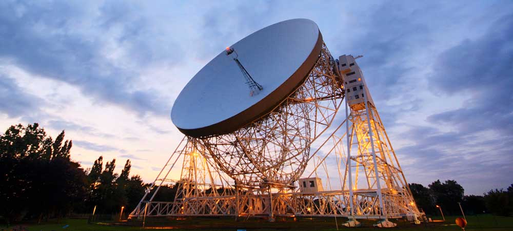 And, of course, here’s how you usually see the radio telescope. You can learn all about the amazing place, and plan your own visit, at www.jodrellbank.net.