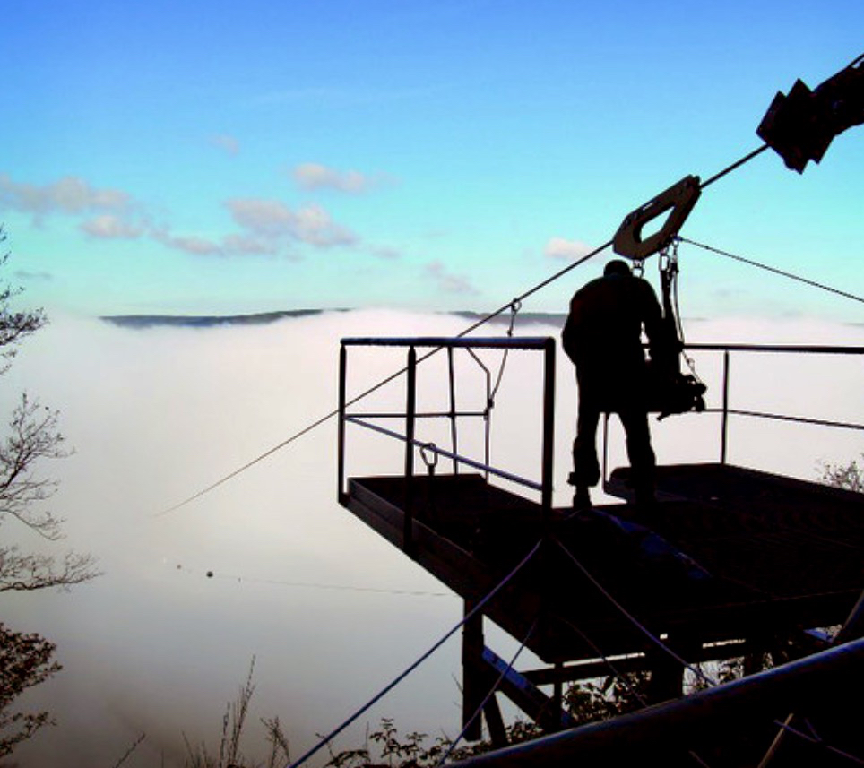 You enter the park on a footbridge leading to the reception area and out into a former quarry, where the zip wire is sited on the highest point of the park.
