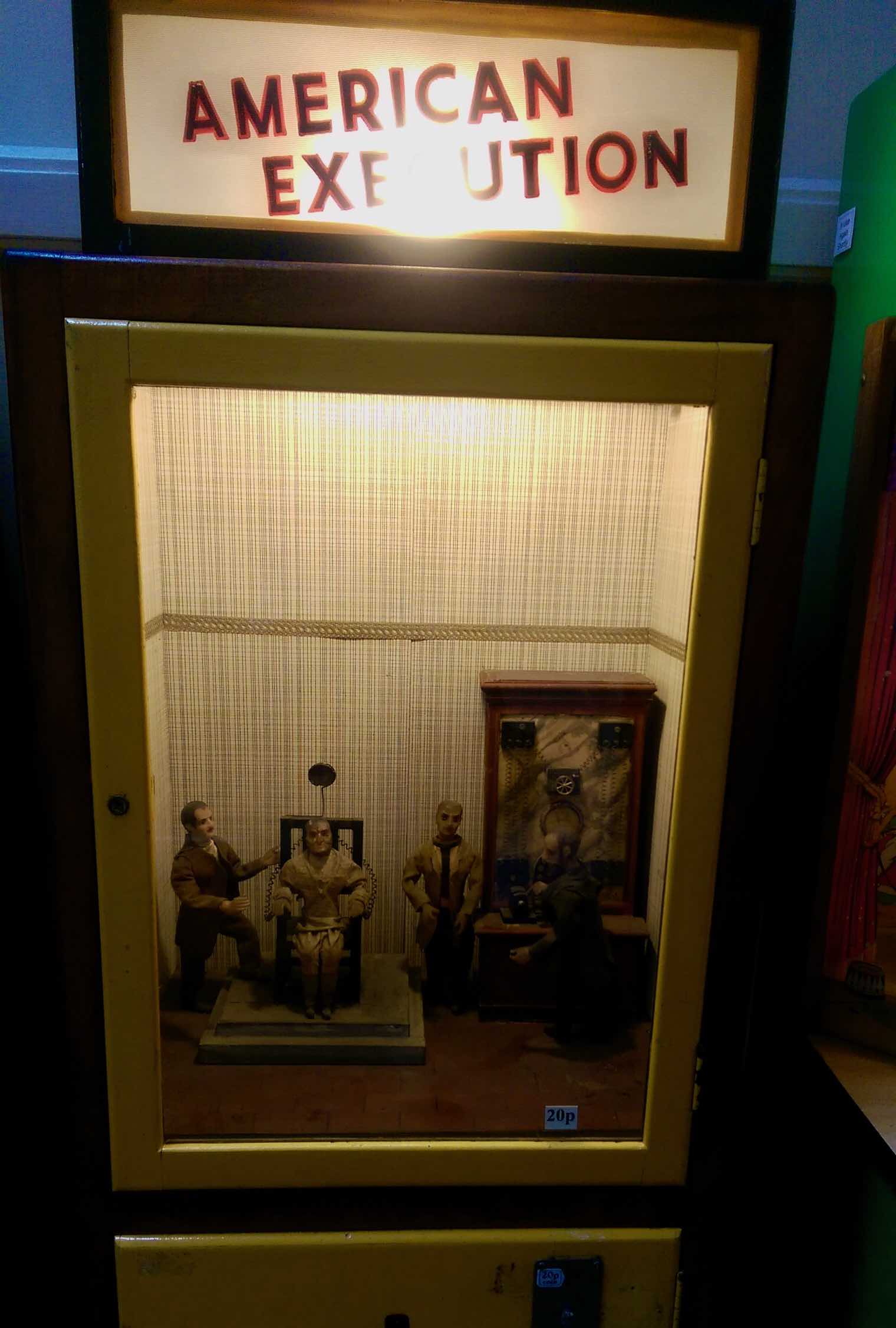 On our visit in May 2017, she was in the good company of other machines including one which plays out an electric chair execution in the USA for the price of 20p.