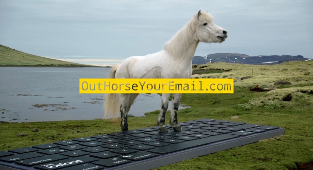 You can even chose which one of three horses you want to answer your email. Chestnut Lila Stjarna Fra Hvitarholti “types fast but might take a nap” for example.