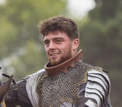 Huw Whitney, who plays Sir Alfred of Wessex, has been jousting and stunt riding for 20 years, with Game of Thrones, The Crown, War Horse, Indiana Jones, Star Wars and both Wonder Woman movies among his many credits.
