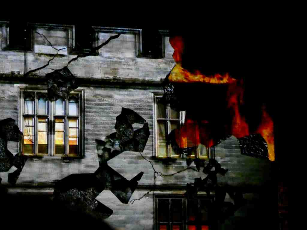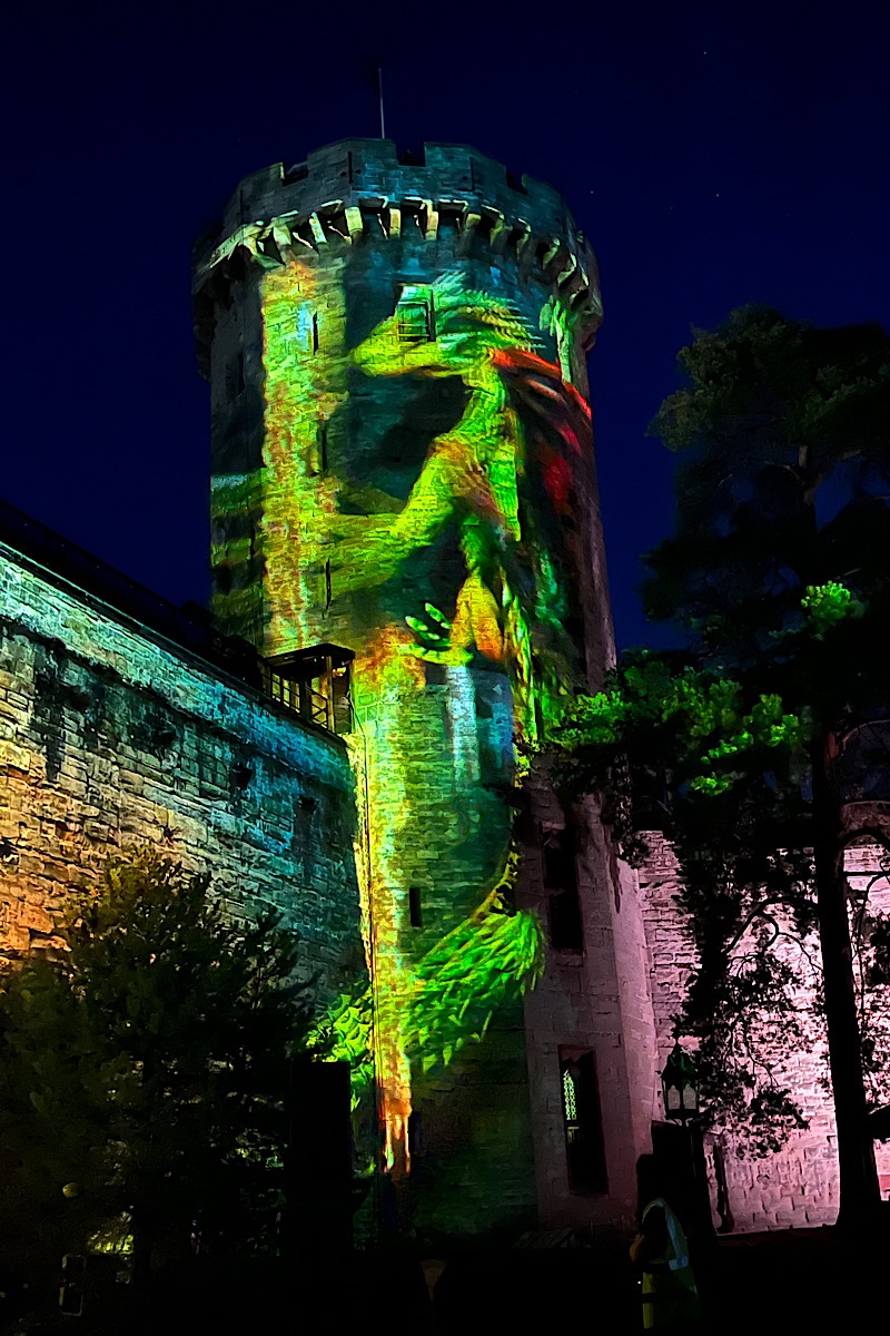Remarkable light mapping projections on the castle walls breathe fiery life into the creature, and give the impression that the towers are ablaze and crumbling under the beast’s brutal attack. It’s clever stuff and needs to be seen to be fully appreciated.