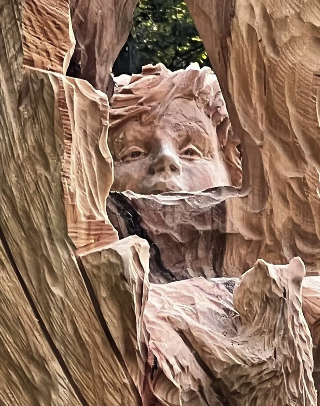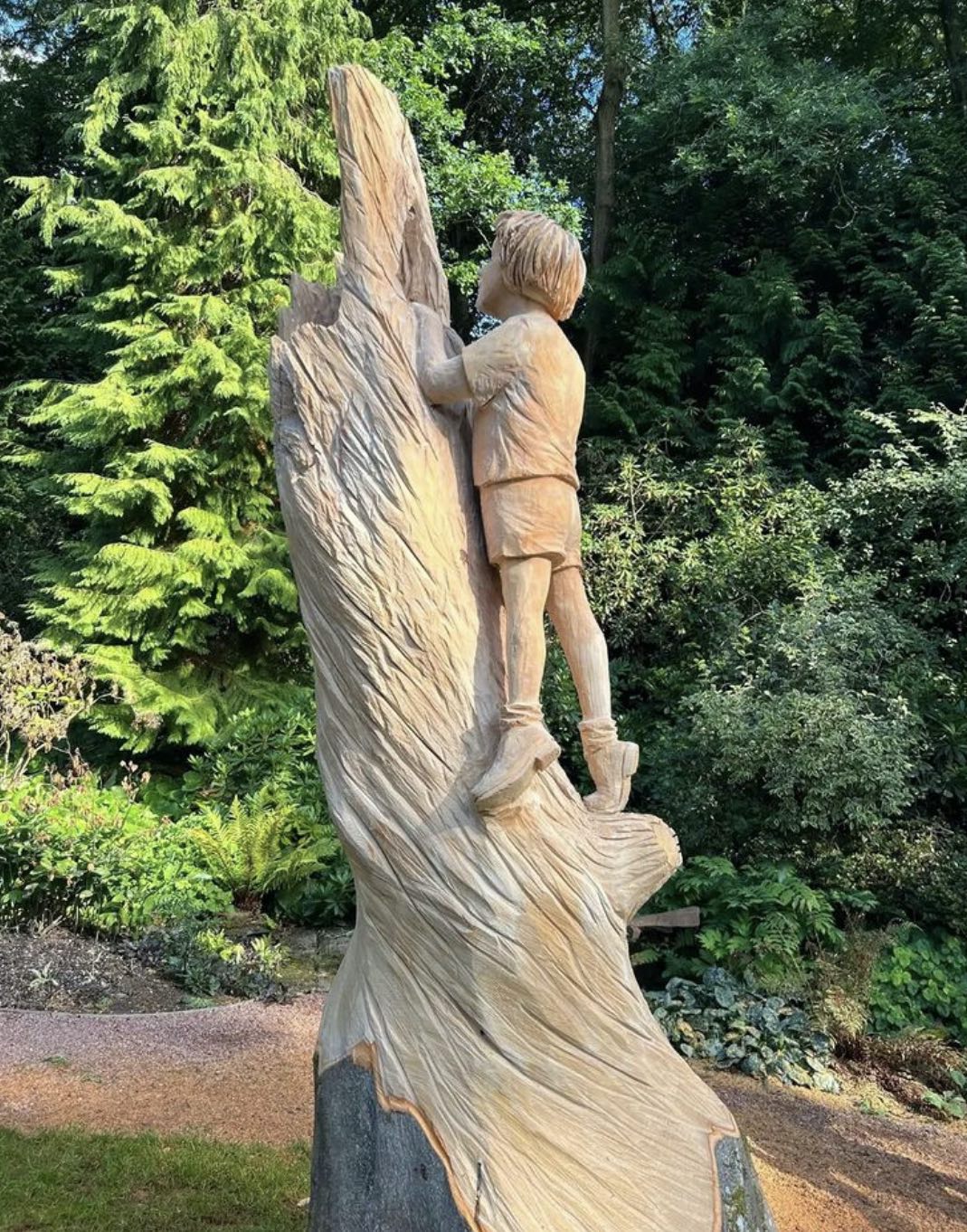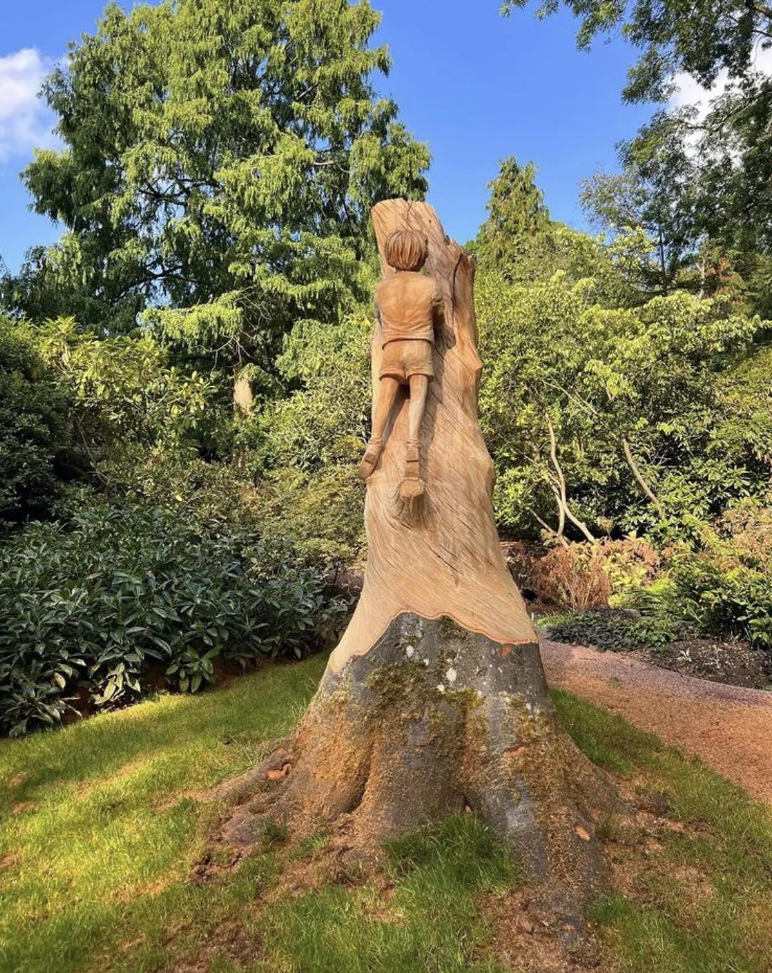 It’s the latest sculpture by gifted chainsaw artist Simon O’Rourke, who I’ve featured here before, and who is based in Wrexham, North Wales. Titled ‘Childhood Curiosity’, it’s wonderful.