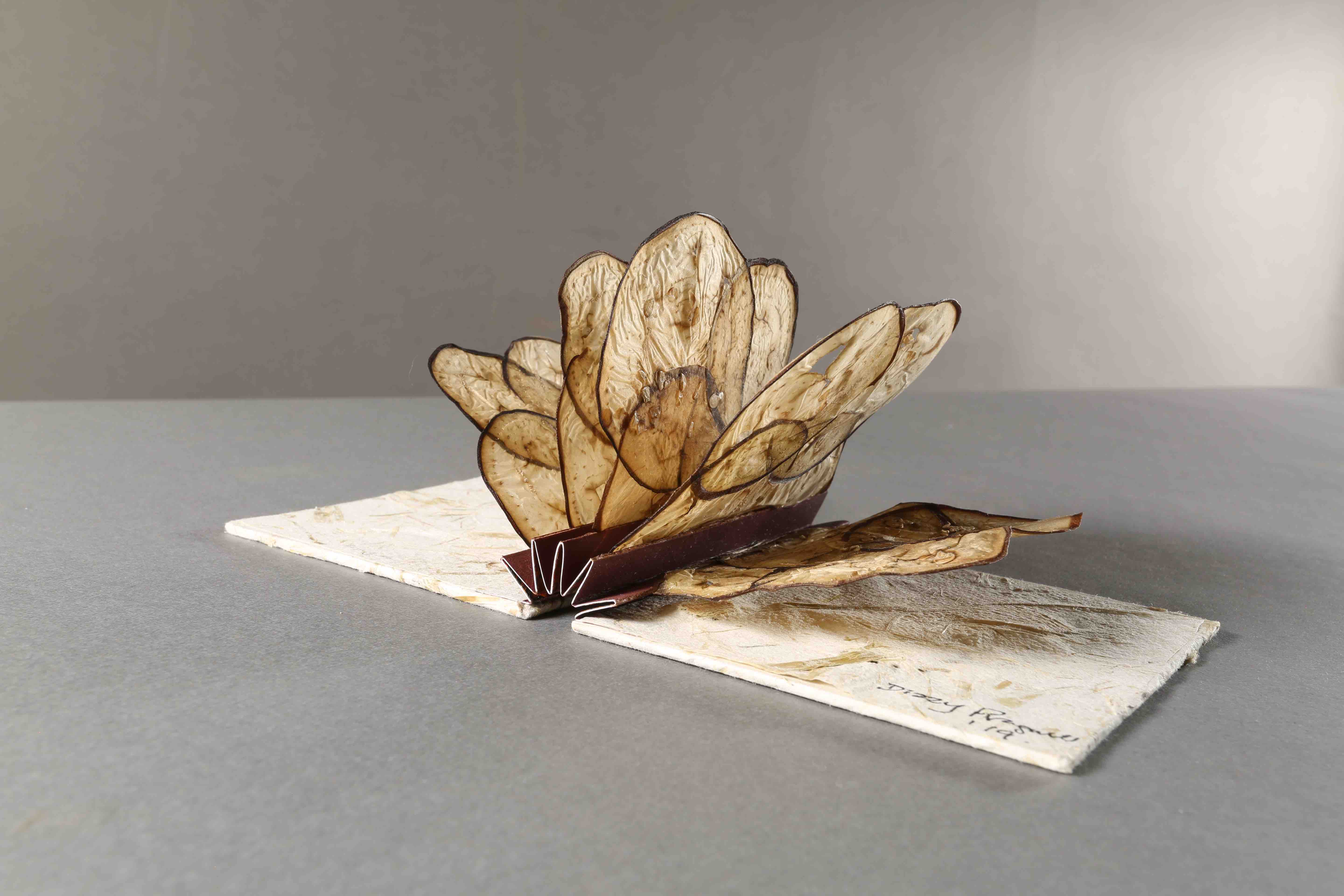 So, if you want a tasty read, there’s Ben Denzer’s 20 Slices of American Cheese, a book made from plastic-wrapped slices of American cheese. Or how about Dizzy Pragnell’s beautiful books, one of which is the lead image in this post, made of vegetables?
