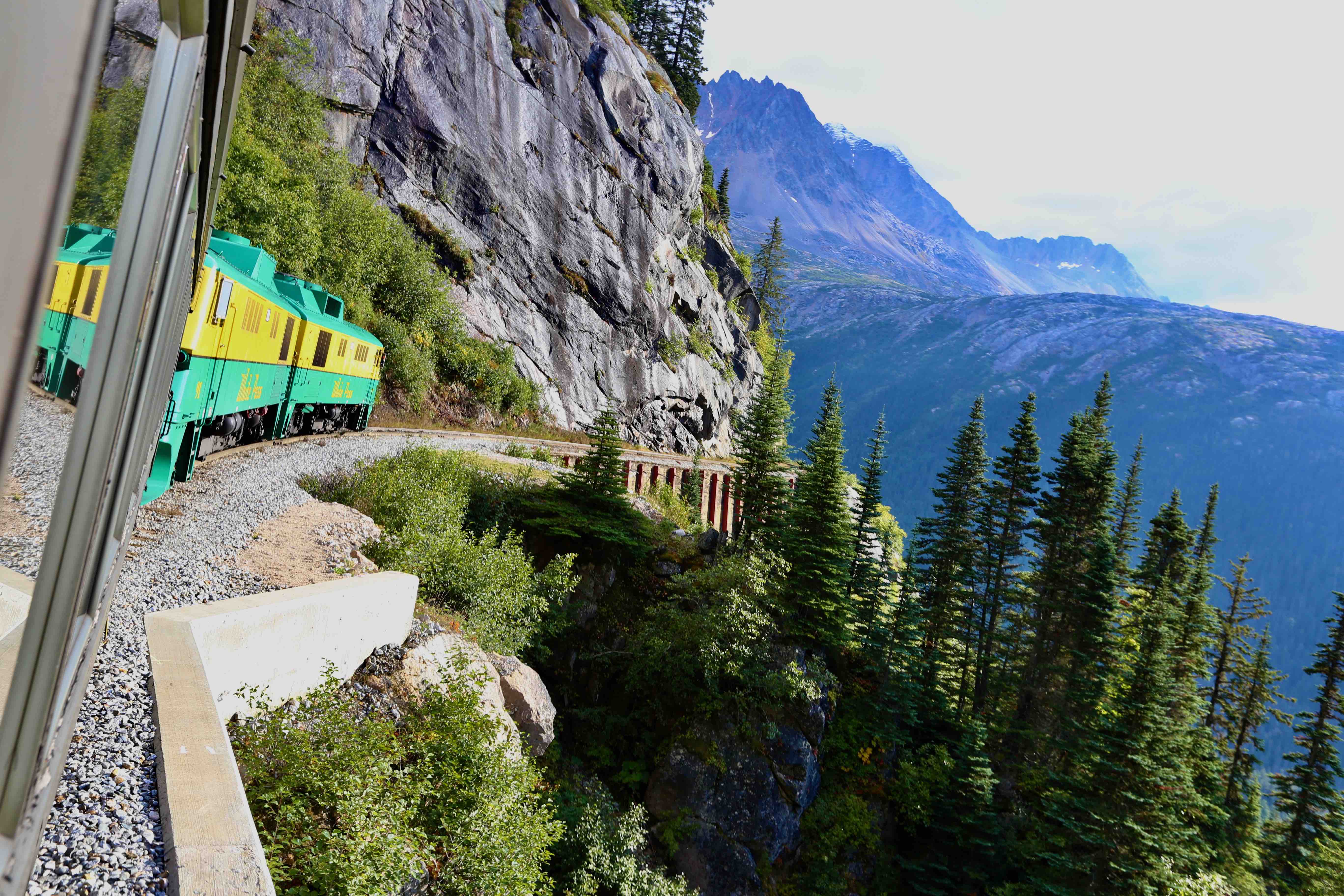 In Skagway we board the White Pass Railway, one of the world’s great train journeys, winding its way from the coast up along the Gold Rush trail into Canada’s Yukon.