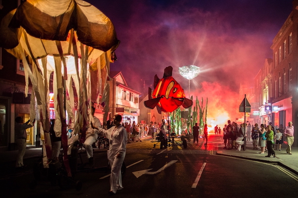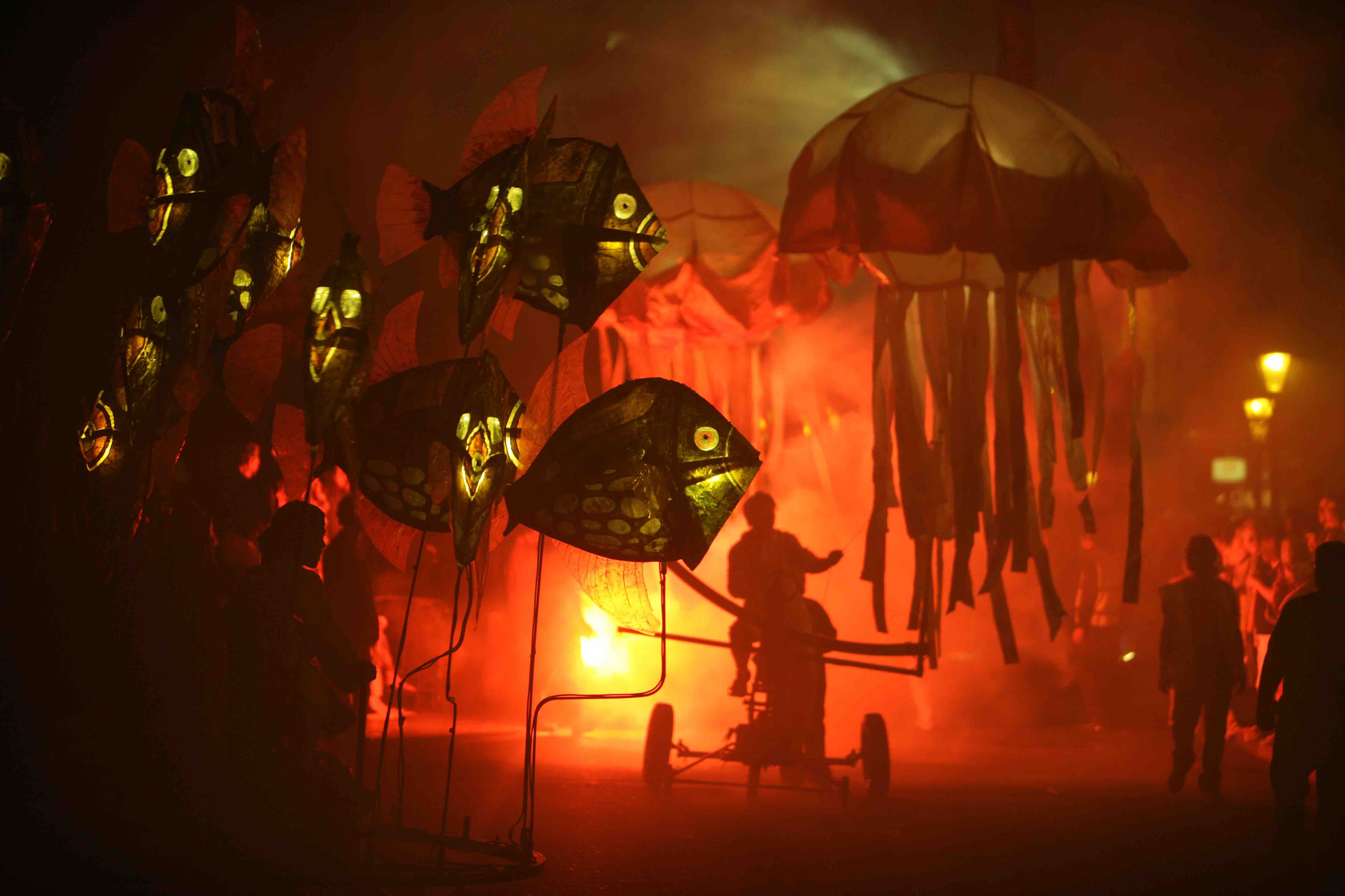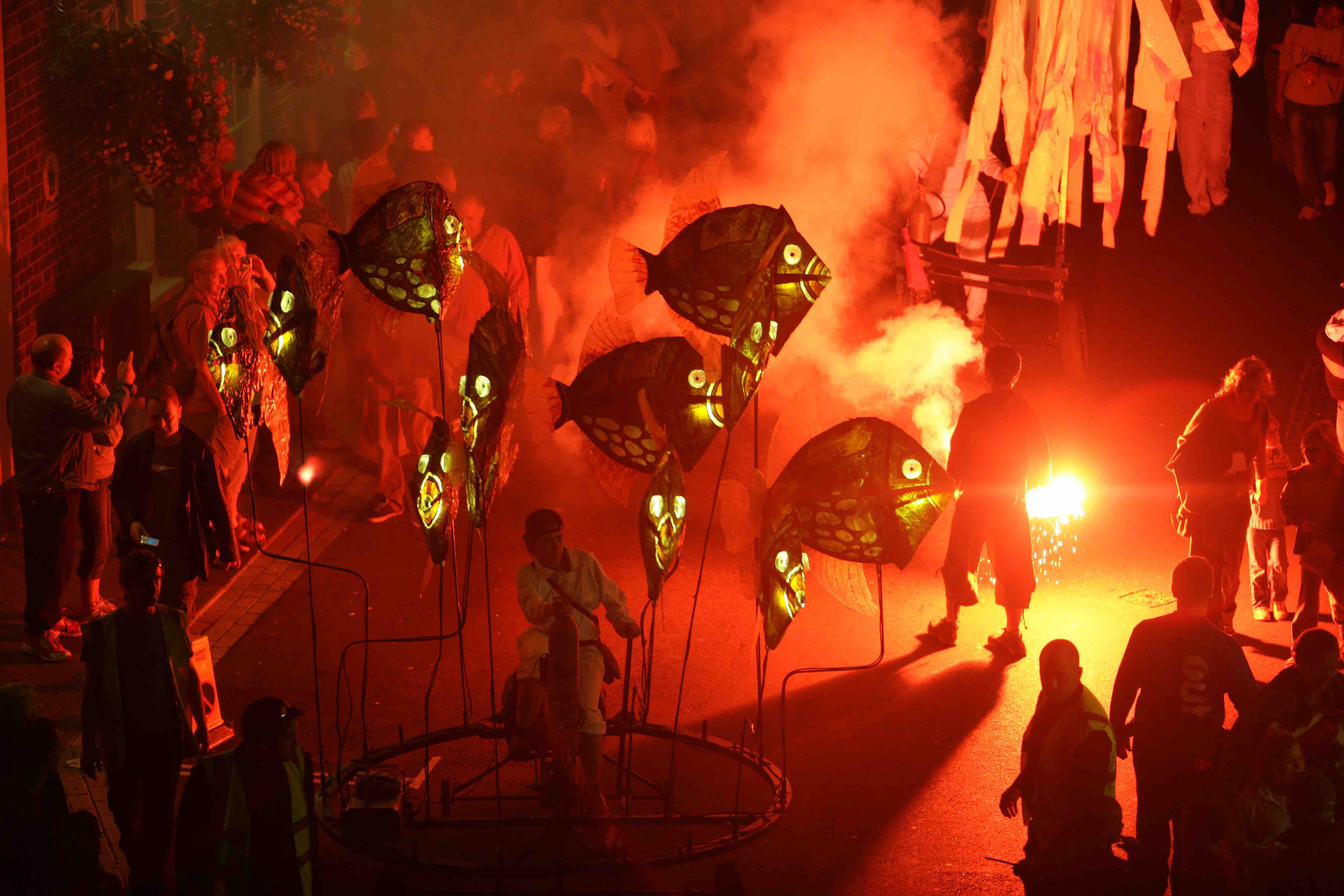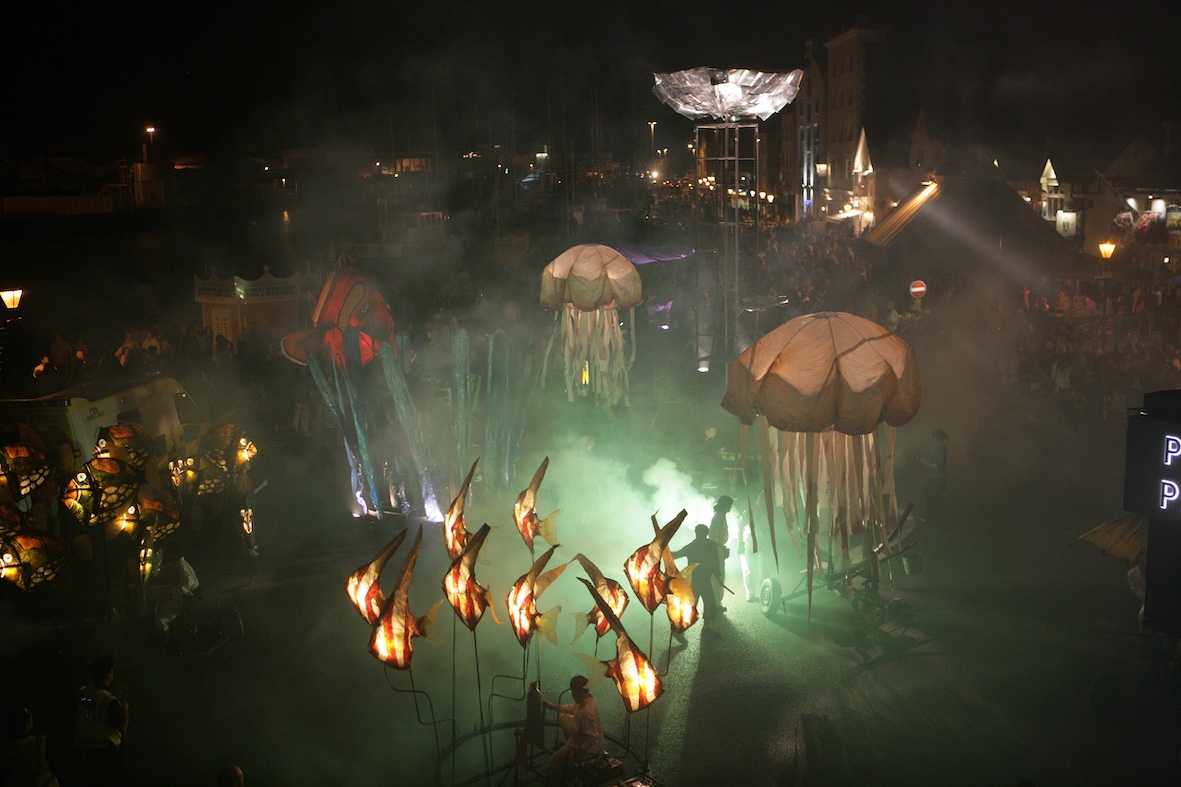 The Dorset resort’s ‘Dusk Till Dark’ festival returns this month with 9ft high illuminated fish and luminescent jellyfish swimming through the town centre thanks to pedal power.