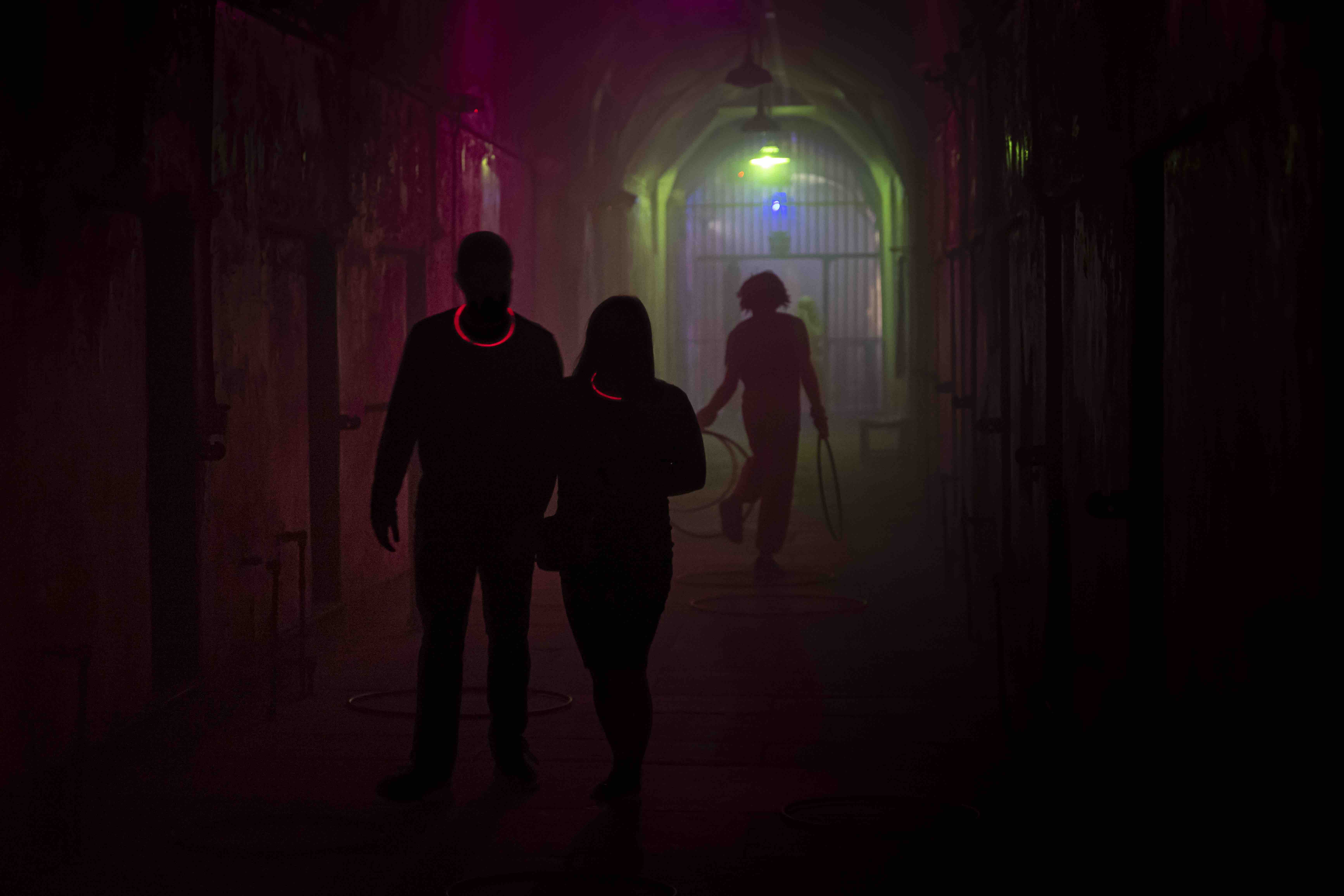 Visitors have the choice to “opt in” for a more intense experience. Those wearing a glow necklace may be grabbed, sent into hidden passageways, and even temporarily separated from their group.