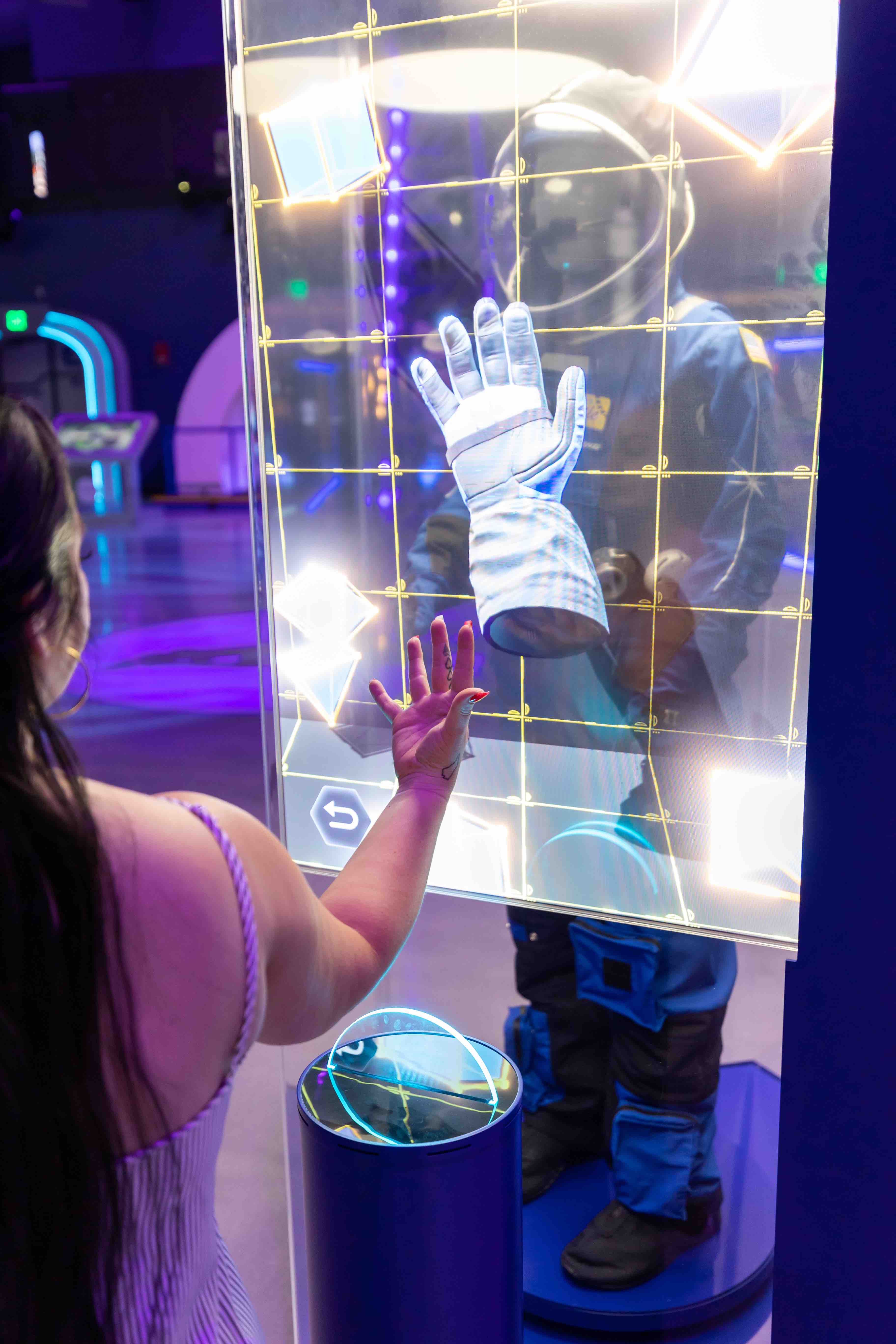 You can also visit the HoloTube presentation station to learn about the James Webb Space Telescope by manipulating holographic imagery, video and animation through a touchscreen kiosk.