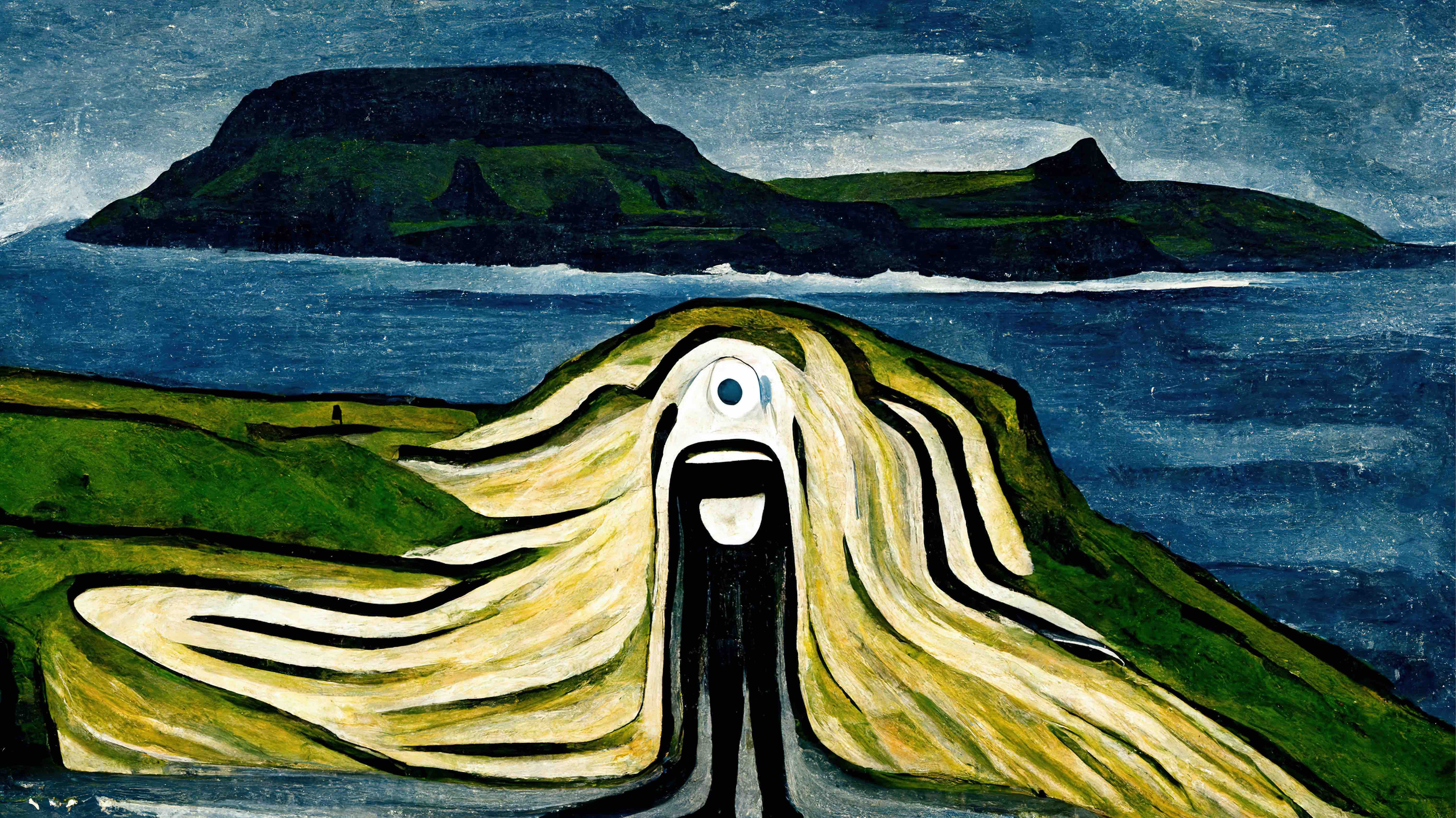 The technology at the heart of the exhibition – Midjourney’s brand-new AI platform – was posed a simple question: “What if the greatest artists ever living had painted the Faroe Islands?”