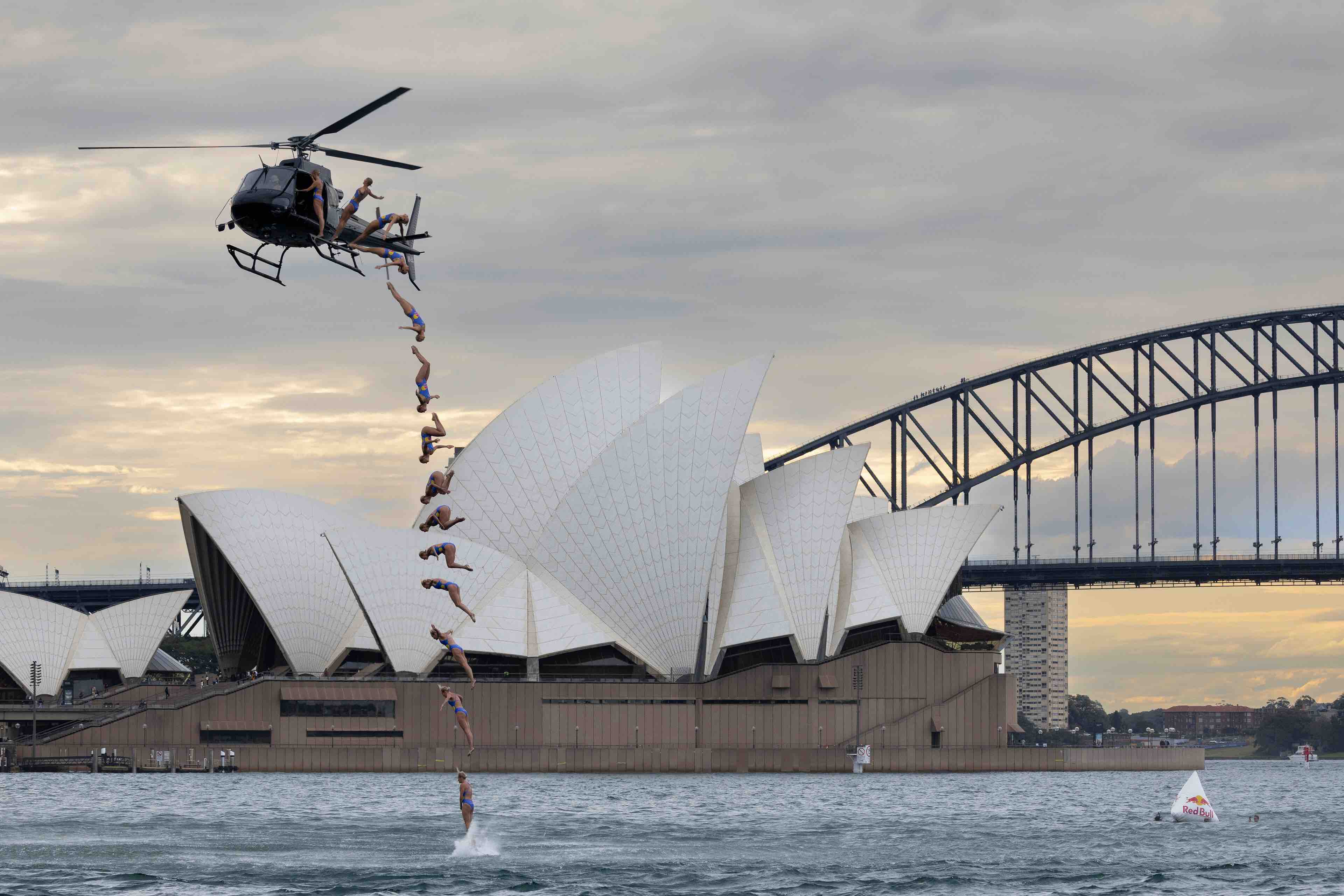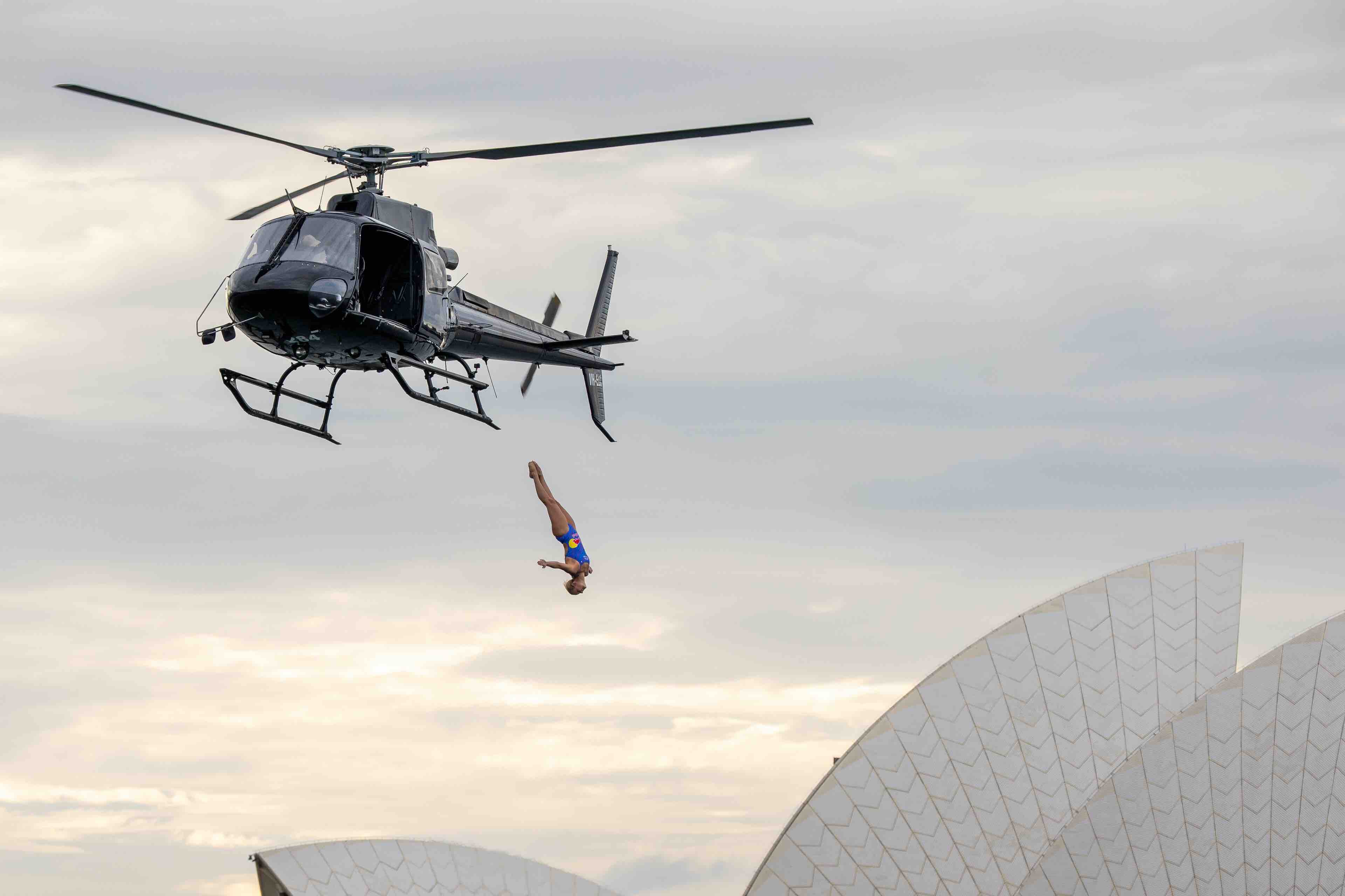 THIS incredible time-lapse photo captures the moment that Rhiannan Iffland dived out of a helicopter into Sydney Harbour, set against the spectacular backdrop of the city’s iconic Opera House and Harbour Bridge.