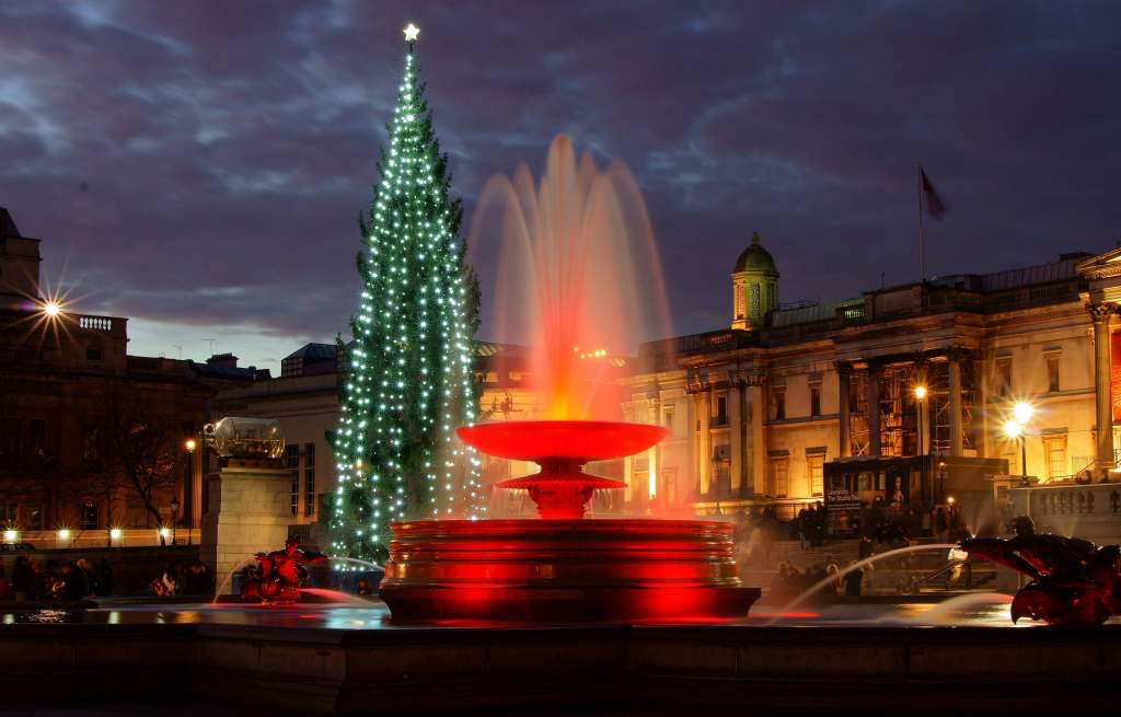 So, on the first Thursday in December, a huge Christmas tree is lit in Trafalgar Square, after travelling all the way from Nordmarka, which is just outside Oslo.