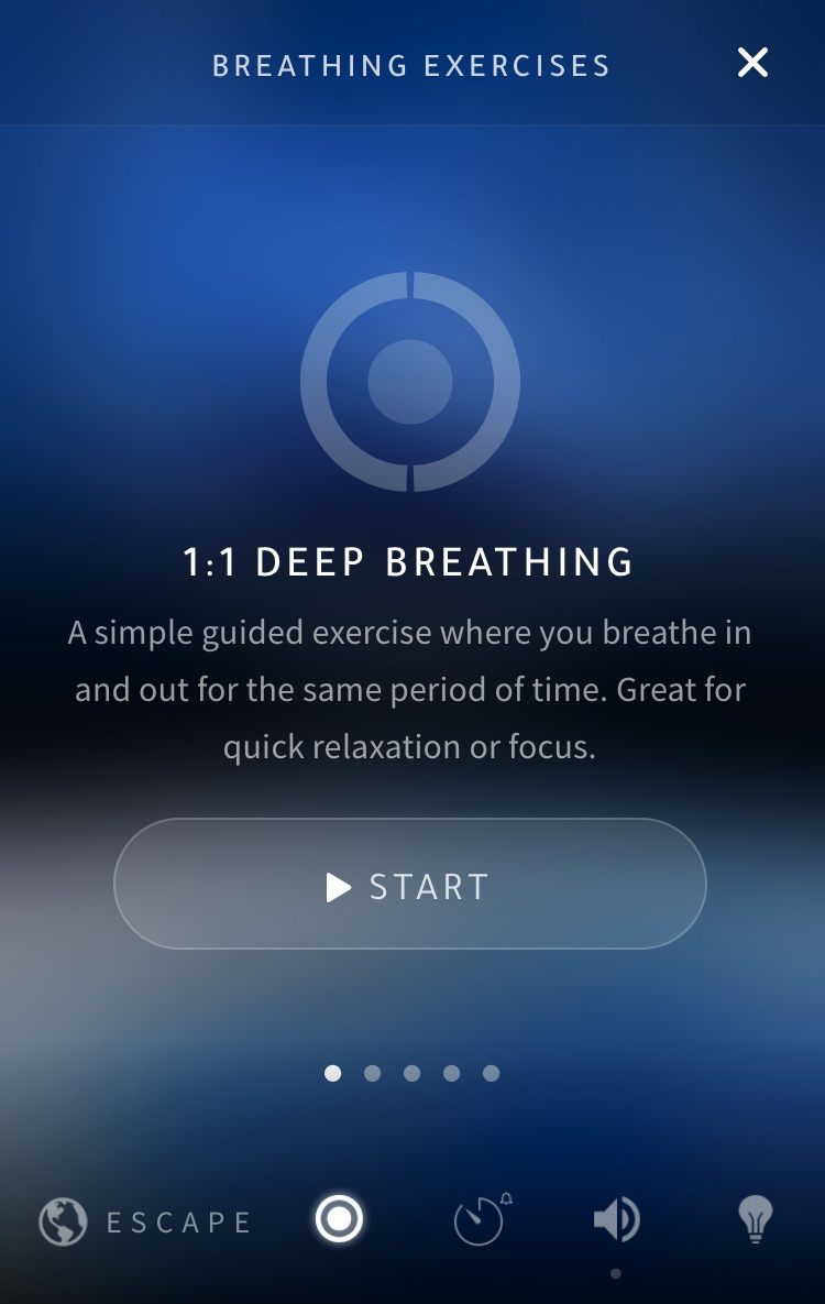 Experiences are initially grouped in to three areas: Focus, Sleep and Escape. There’s a sleep timer, breathing exercises, and the option to run it in the background with other apps.