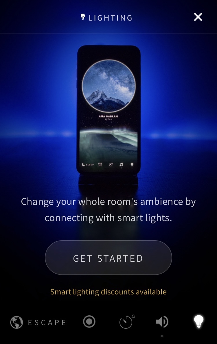 So you can listen to an audiobook or music, for example, with the sound of a babbling brook or breaking surf in the background. The app also works with smart lights for ambient glows.