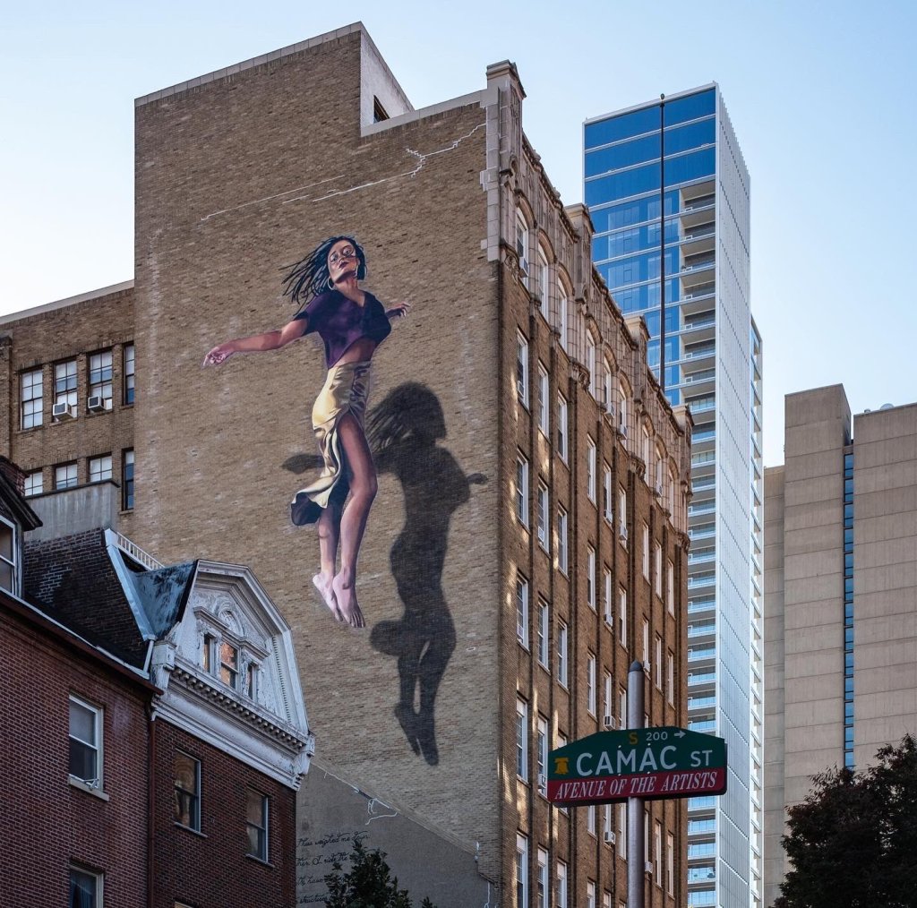 SHE floats 100ft high up in the air, her shadow cast on the wall of a Philadelphia building. This marvellous mural is the first in a new series by acclaimed art activist Tatyana Fazlalizadeh.