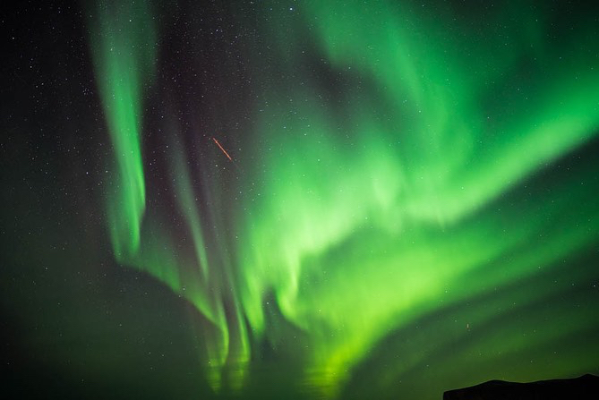 “I was returning from a tour to the Glacier Lagoon and Diamond Beach with Reykjavik Excursions when they put on quite the show,” says Albert, who snapped the aurora pictures on Monday night.