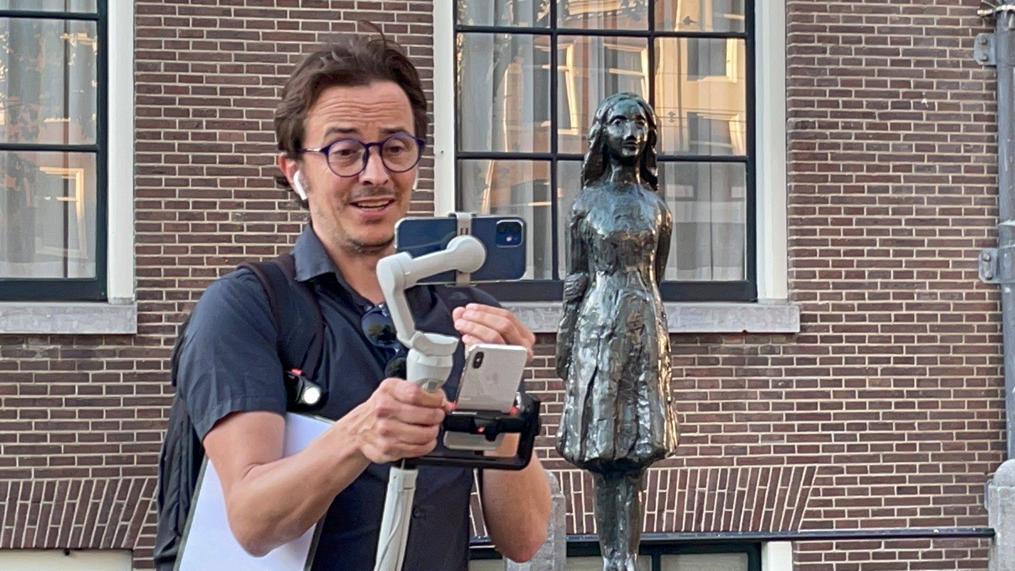 On Heygo he leads live-streamed real-time tours of the Netherlands, Belgium and destinations further afield, sometimes by bicycle, which are free to join, although tips are encouraged.