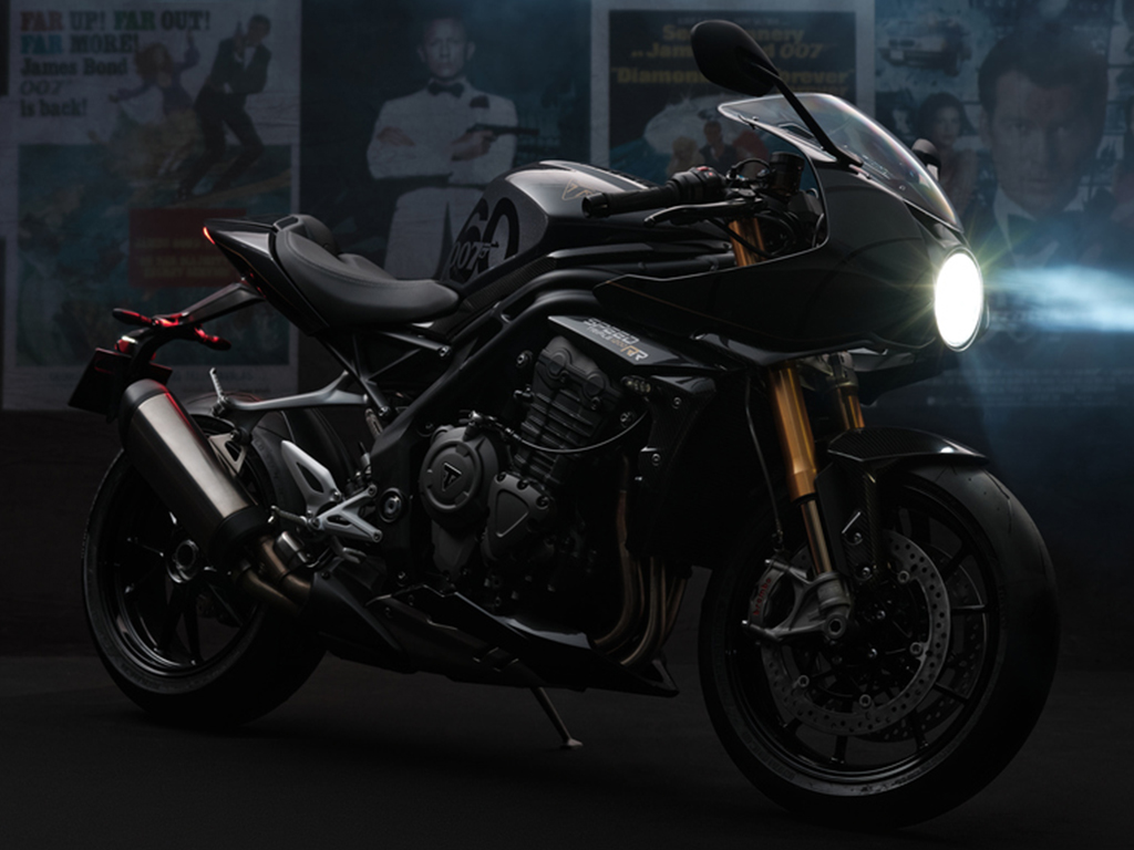 The Speed Triple 1200 RR Bond Edition celebrates 60 years of James Bond, individually numbered, beautifully handcrafted and featuring the logos of all 25 Bond movies on the tank.