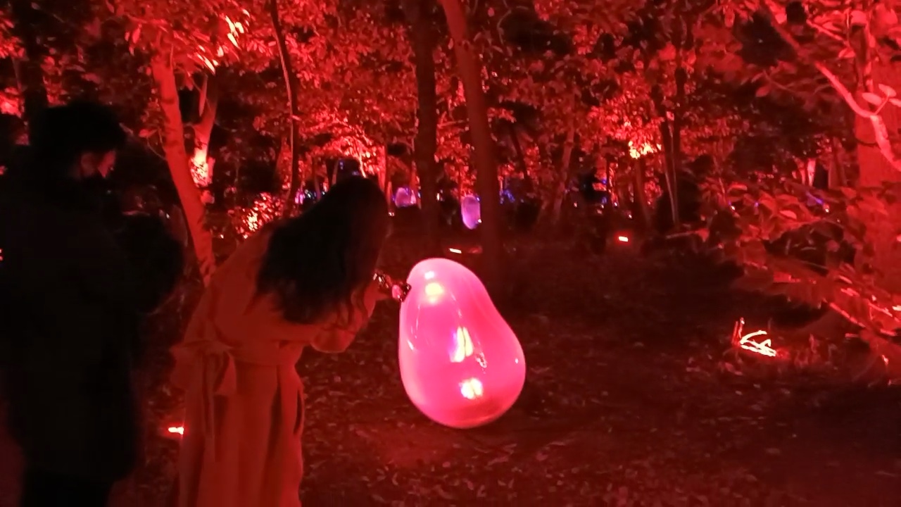 There’s more resonance in the eucalyptus park, where the eggs are supersized, in similar fashion to the indoor Tokyo installation, and you can push your way between them, each touch setting off those trademark colour changes all around.