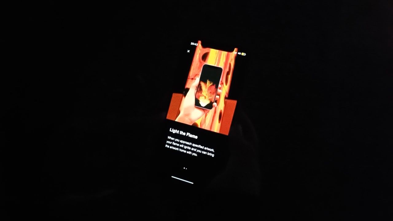 If you’ve downloaded the Distributed Art app on your phone, you’ll find that as you approach the artwork, the flames appear on your screen too. And that’s without any button pushing.