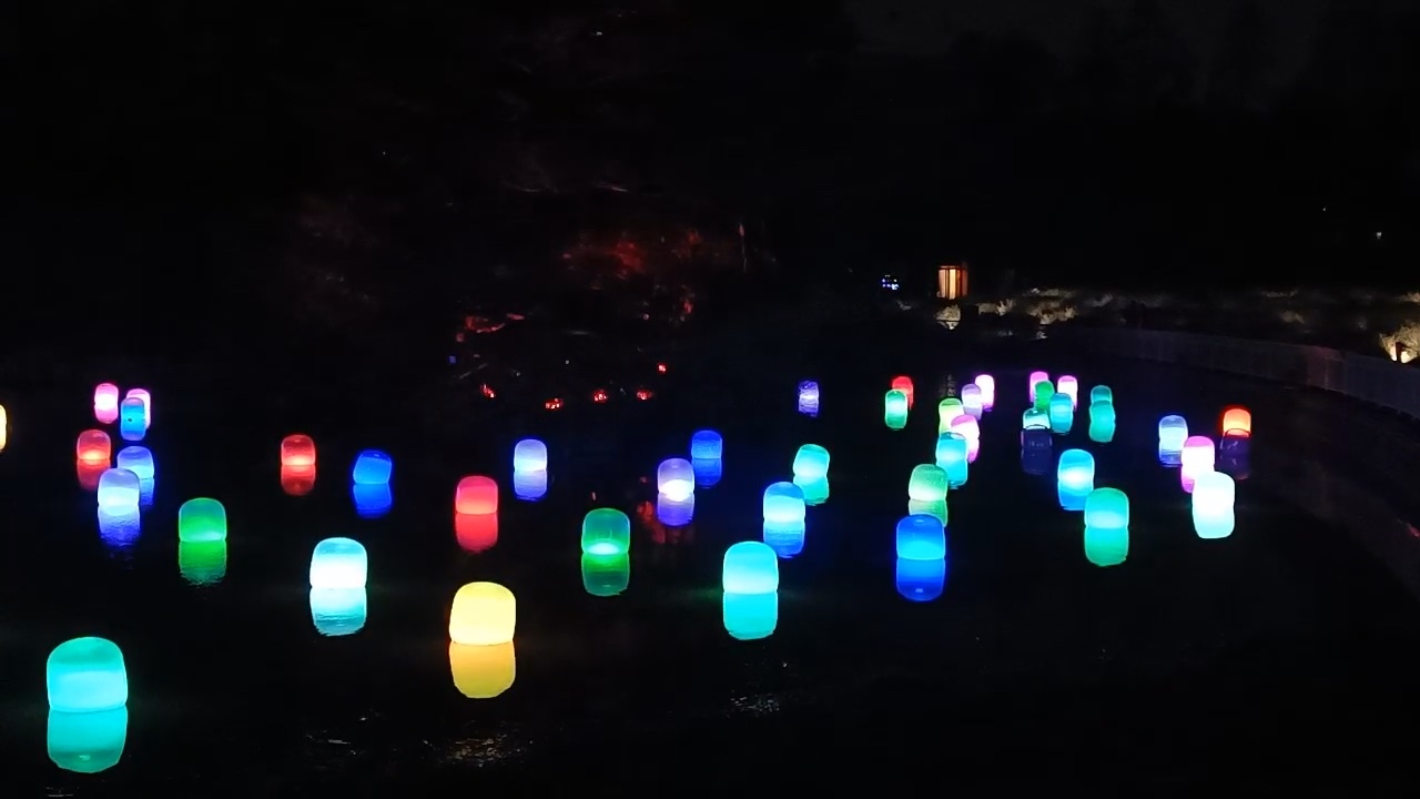 More traditional are the floating candle lights on Oike Lake, each of which has a mind of its own, autonomously drifting on the water at the whim of the wind but setting off colour chains when they touch.