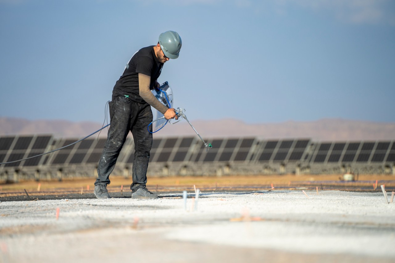 French-Swiss artist Saype realized a giant landart painting on March 11th, 2023 at the Ibri solar farm, Ibri 2 IPP Project, in Oman. With an overall area of 11’250 square meters, this artwork was created using biodegradable pigments made out of charcoal & chalk. This work questions us about our relationship to energy, and the new solutions to get out of fossil fuels.