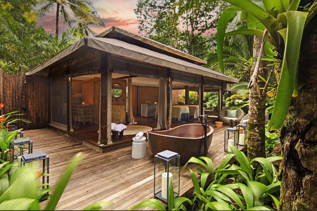 It’s an exclusive resort, embraced by the island’s gorgeous greenery, affording ocean views from the casitas’ private plunge pools and authentic thatched roof cabanas.