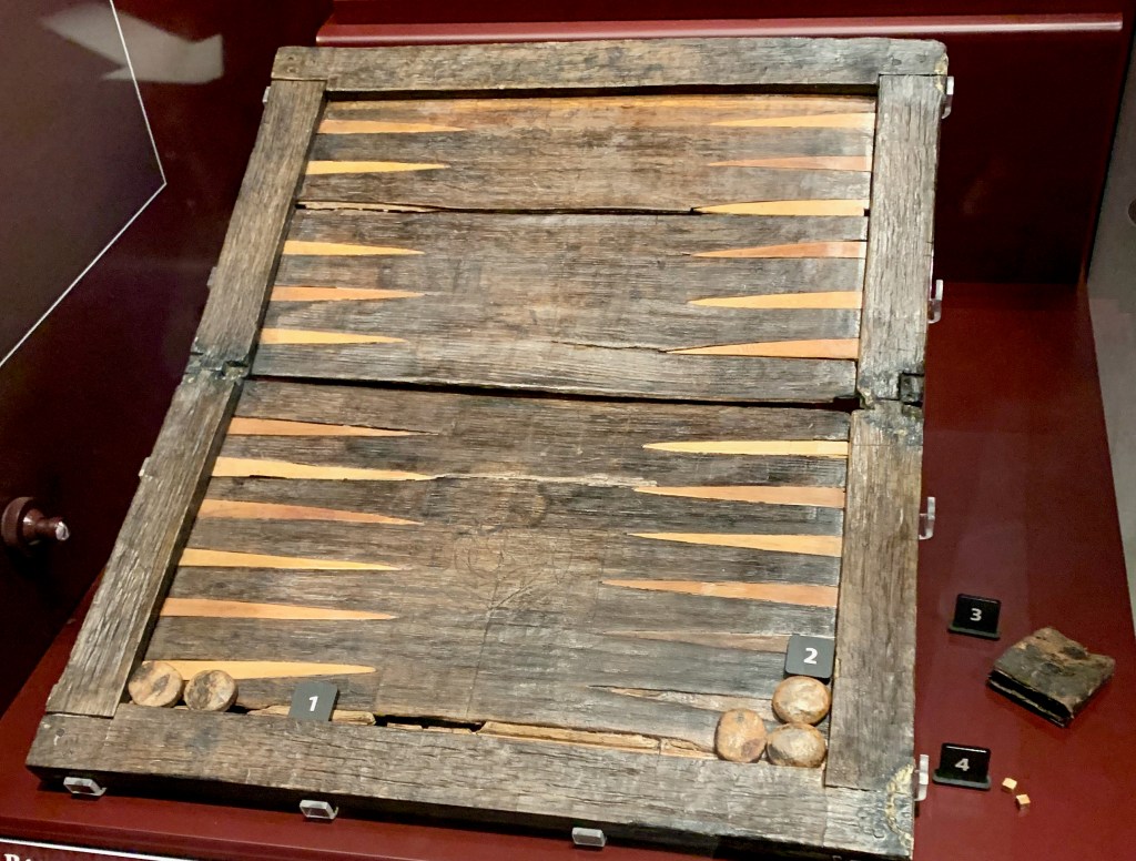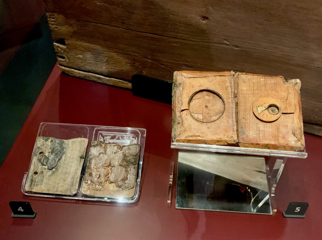 Most of the artefacts have been remarkably preserved and often it’s the small, personal items that bring home the human face of the tragedy. There’s a carpenter’s comb and manicure set; a sailor’s early backgammon game, dice and tumbler.