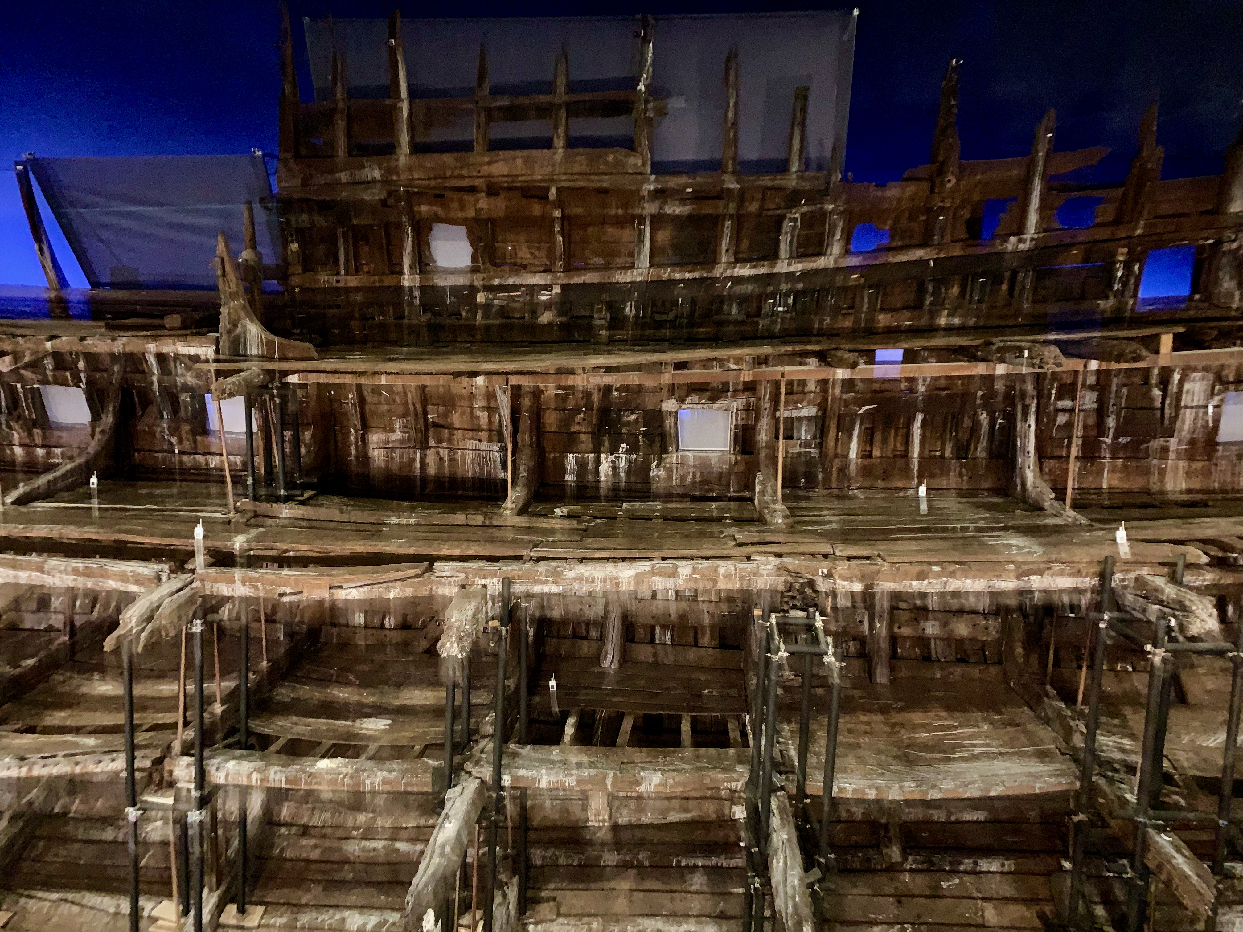 I returned in 2016, three years after the eye-catching new building, shaped like a ship’s hull, opened. This time, I was able to view clearly the reclaimed hull from glass-windowed walkways set opposite each of the main decks. It was wonderful.