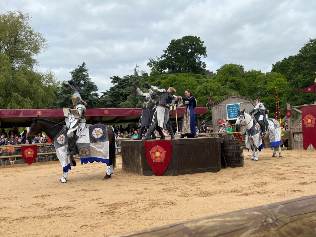 There’s sword fighting and hand-to-hand combat as well-scripted history is played out – and, of course, the crowd favourite: knights galloping, lances at the ready to joust, with wood splintering in the air as they crash in contest.