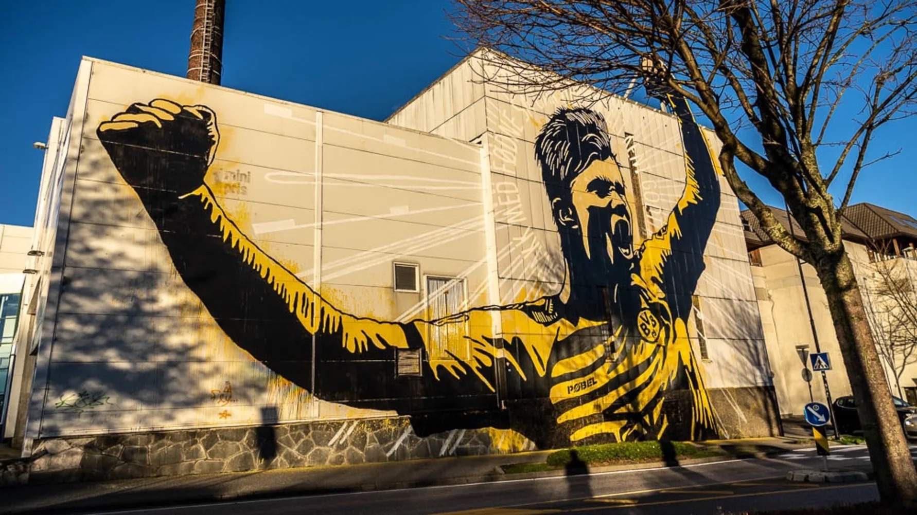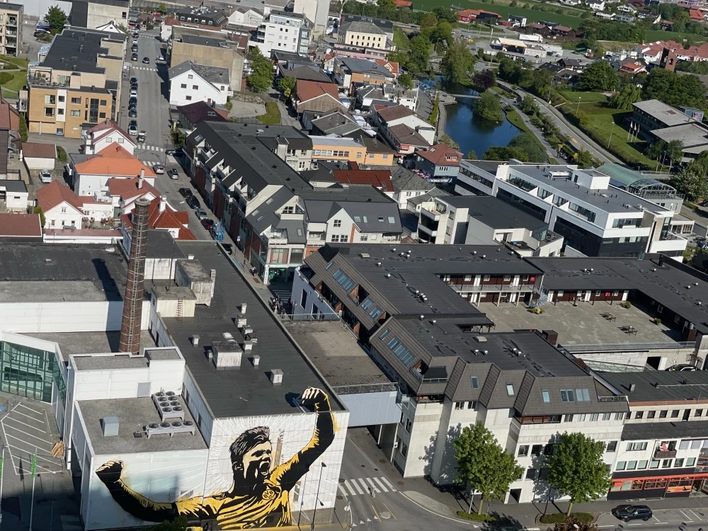 There are selfies in front of two street art images of Haaland, one by Anette Moi and the other one by Pøbel, and a stop by Hole Gard at Voll for the fresh cow’s milk the star drinks in social posts.