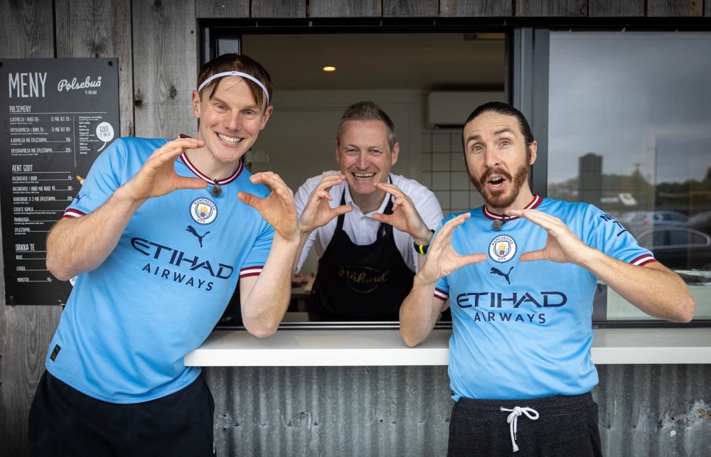 Barry and Garry call in at Pølsebuå Te Håland (Håland’s sausage kiosk), and dine at Chinese restaurant When Hua House, where Haaland used to eat and where a signed football kit is on show.