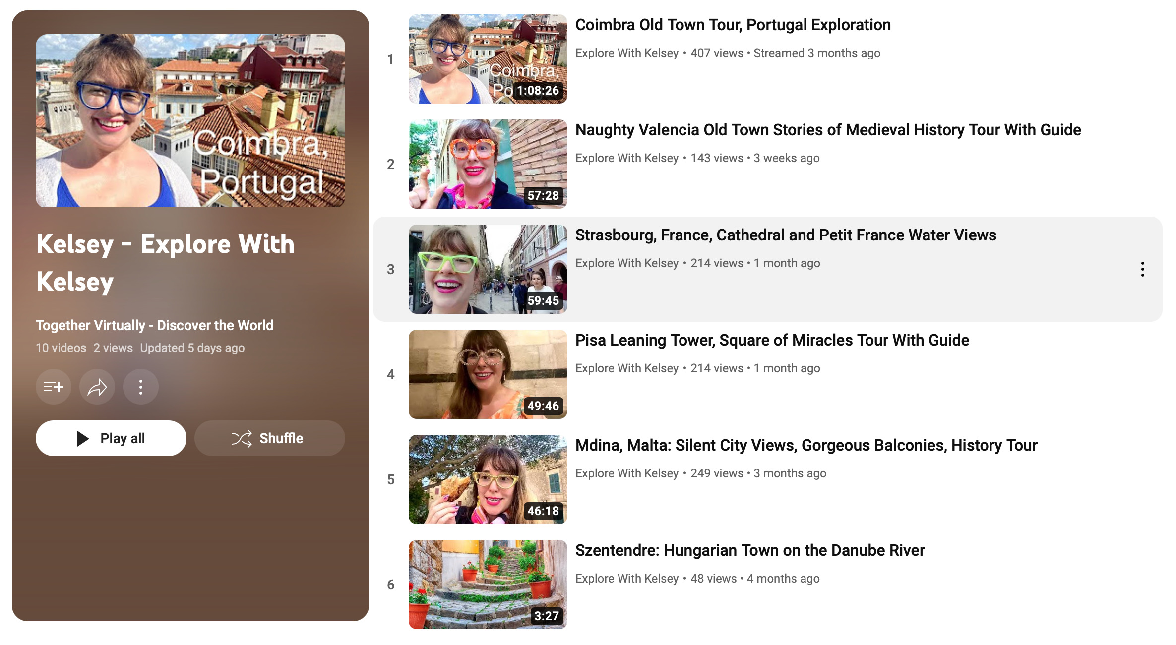 And there are subscription links to individual channels on which guides continue to offer a growing number of new tours and live streamed travel experiences daily.