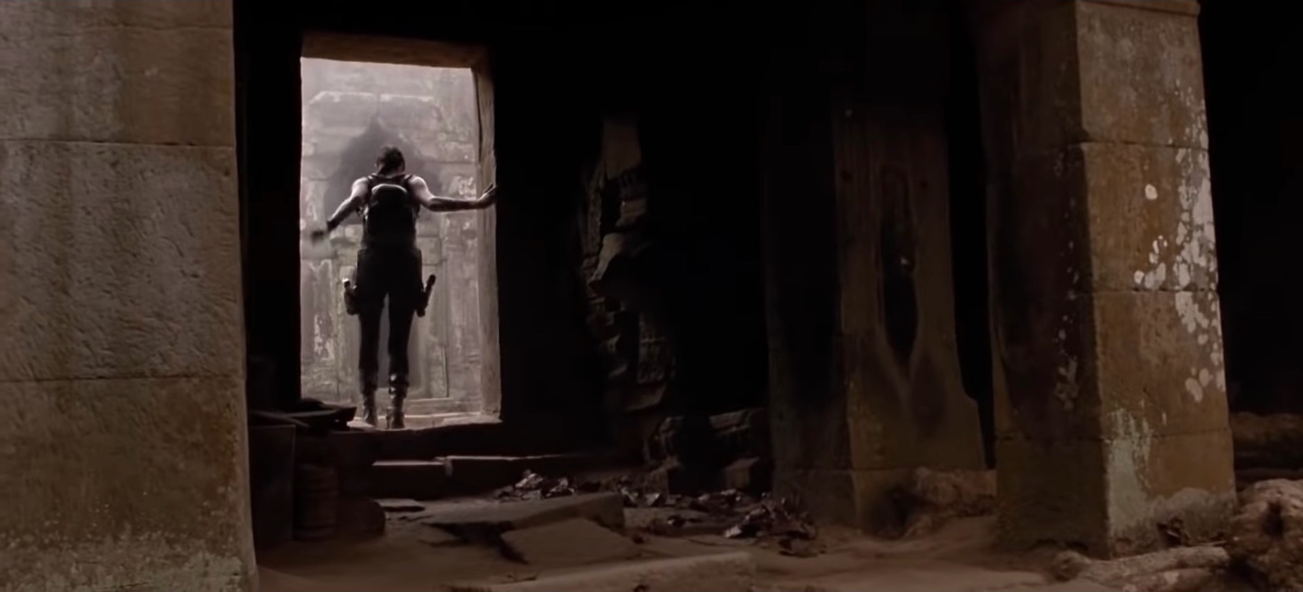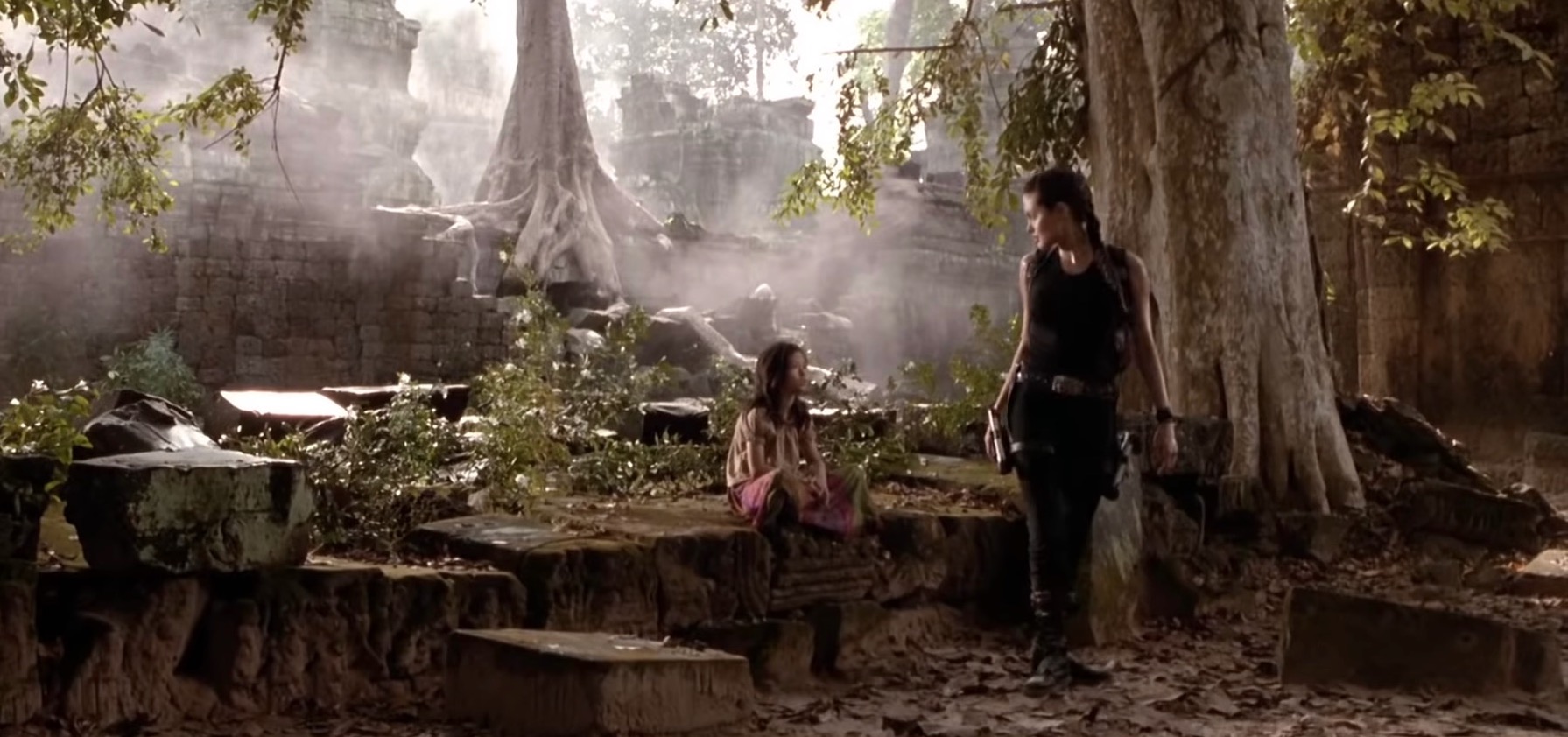 Their roots stretch out like hungry fingers along, and down, the walls. At times they resemble a waterfall caught in a sliver of time. No wonder Lara loved the place.